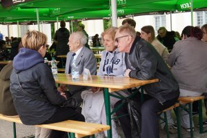 - Po prawej stronie od wejścia głównego umieszczony będzie ogródek gastronomiczny oraz oświetlony namiot z miejscami do siedzenia, w tym jednej stolik przy wejściu zarezerwowany dla osób z niepełnosprawnością.