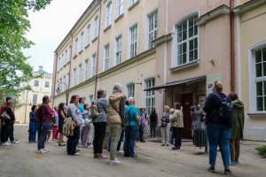 W sobotnie przedpołudnie dr Magdalena Muskała i Piotr Wieczeński z Muzeum Uniwersytetu Medycznego w Białymstoku i Pałacu Branickich oprowadzali pasjonatów historii Białegostoku oraz dziejów medycyny po kampusie uniwersyteckim. Wspólnie przemierzaliśmy okolice Pałacu Branickich - głównej siedziby Uniwersytetu Medycznego w Białymstoku - ścieżkami pierwszych studentów Uczelni. Zajrzeliśmy do dwóch najstarszych sal wykładowych, opowiedzieliśmy o mieszkańcach Pałacu i Collegium Primum, a także o najstarszym radiu akademickim w Polsce - Centrum Radiowe Radiosupeł. Spacer zakończyliśmy wśród jabłoni zasadzonych przez prof. Witolda Sławińskiego w dawnym Ogrodzie Botanicznym i Roślin Leczniczych AMB.