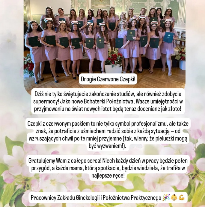 Serdecznie gratulujemy wszystkim świeżo upieczonym, dyplomowanym Licencjatkom i Magistrantkom Położnictwa.