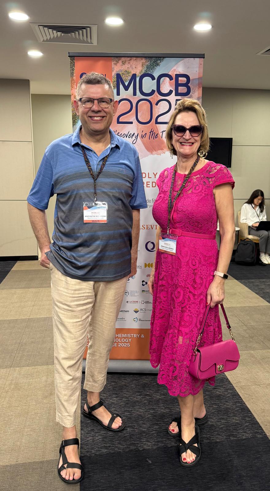 Profesorowie Anna i Krzysztof Bielawscy uczestniczyli w dn. 13.04-16.04.2025 w konferencji organizowanej przez Royal Australian Chemical Instytute dotyczącej Medical Chemistry and Chemical Biology Conference 2025 w Darwin (Australia). Podczas wydarzenia zaprezentowali plakaty naukowe przedstawiające wyniki najnowszych badań:
