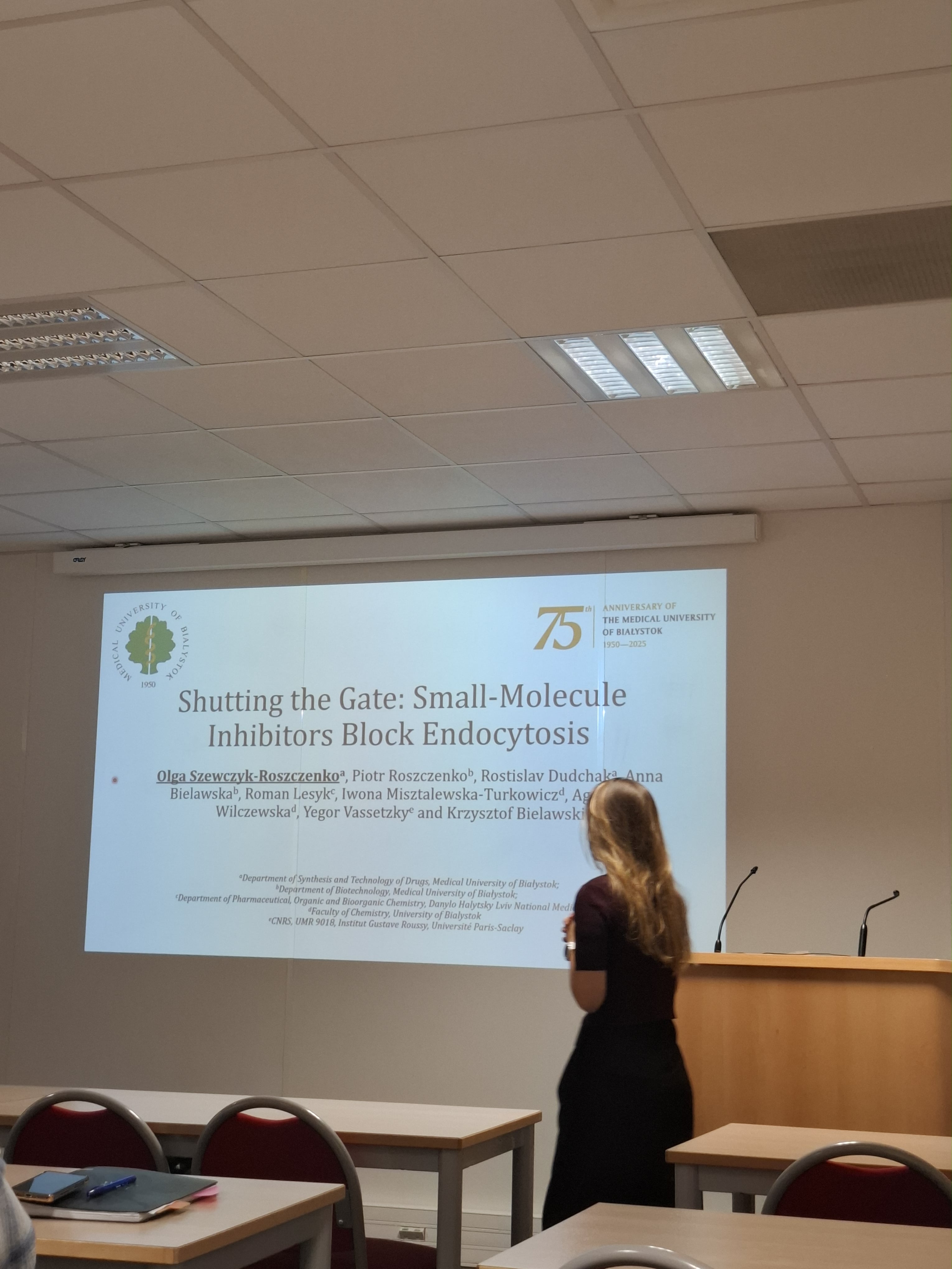 W dniach 16-18 września nasi pracownicy oraz doktoranci uczestniczyli w V edycji sympozjum Szkoła Chemii Medycznej w Gdańsku. Nasi reprezentanci przedstawili swoje plakaty naukowe, dzieląc się wynikami najnowszych badań. Wyróżnienie za najlepszy plakat zdobył doktorant II roku, Rostyslav Dudchak, zajmując I miejsce w sesji plakatowej za pracę pt. „Działanie przeciwnowotworowe nowych pochodnych 4-tiazolidynonu”.