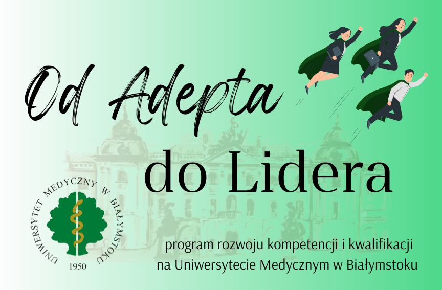 W dniu 05.02.2024 pomiędzy Uniwersytetem Medycznym w Białymstoku a Narodowym Centrum Badań i Rozwoju została podpisana umowa o dofinansowanie projektu pn. „Od ADEPTA do LIDERA - program rozwoju kompetencji i kwalifikacji na Uniwersytecie Medycznym w Białymstoku” w ramach programu Fundusze Europejskie dla Rozwoju Społecznego 2021-2027, współfinasowanego ze środków Europejskiego Funduszu Społecznego Plus.