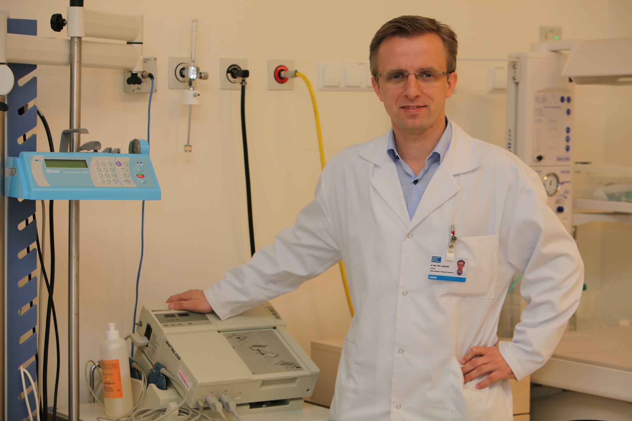Prof. Piotr Laudański, kierownik Kliniki Perinatologii i Położnictwa, 42 lata. W 2003r. uzyskał tytuł doktora, a w 2010 tytuł doktora habilitowanego. Posiada tytuł specjalisty w dziedzinie ginekologii i położnictwa oraz jako pierwszy w województwie podlaskim zdobył tytuł specjalisty w dziedzinie perinatologii. Kilka dni temu uzyskał kolejną podspecjalizację z endokrynologii ginekologicznej i rozrodczości. Profesor w pracy klinicznej interesuje się różnymi aspektami położnictwa i medycyny rozrodu, ze szczególnym uwzględnieniem opieki nad pacjentkami z niepłodnością i endometriozą. Jest autorem ponad 60 publikacji naukowych z listy filadelfijskiej, których IF wynosi ponad 100. Jest też autorem 10 patentów i wniosków patentowych. Może się również pochwalić licznymi nagrodami, m.in. Nagrodą Innowatora UMB w 2013r. Wspólnie z zespołem zdobył Złoty Medal Międzynarodowej Wystawy Innowacji w Genewie w 2015r.