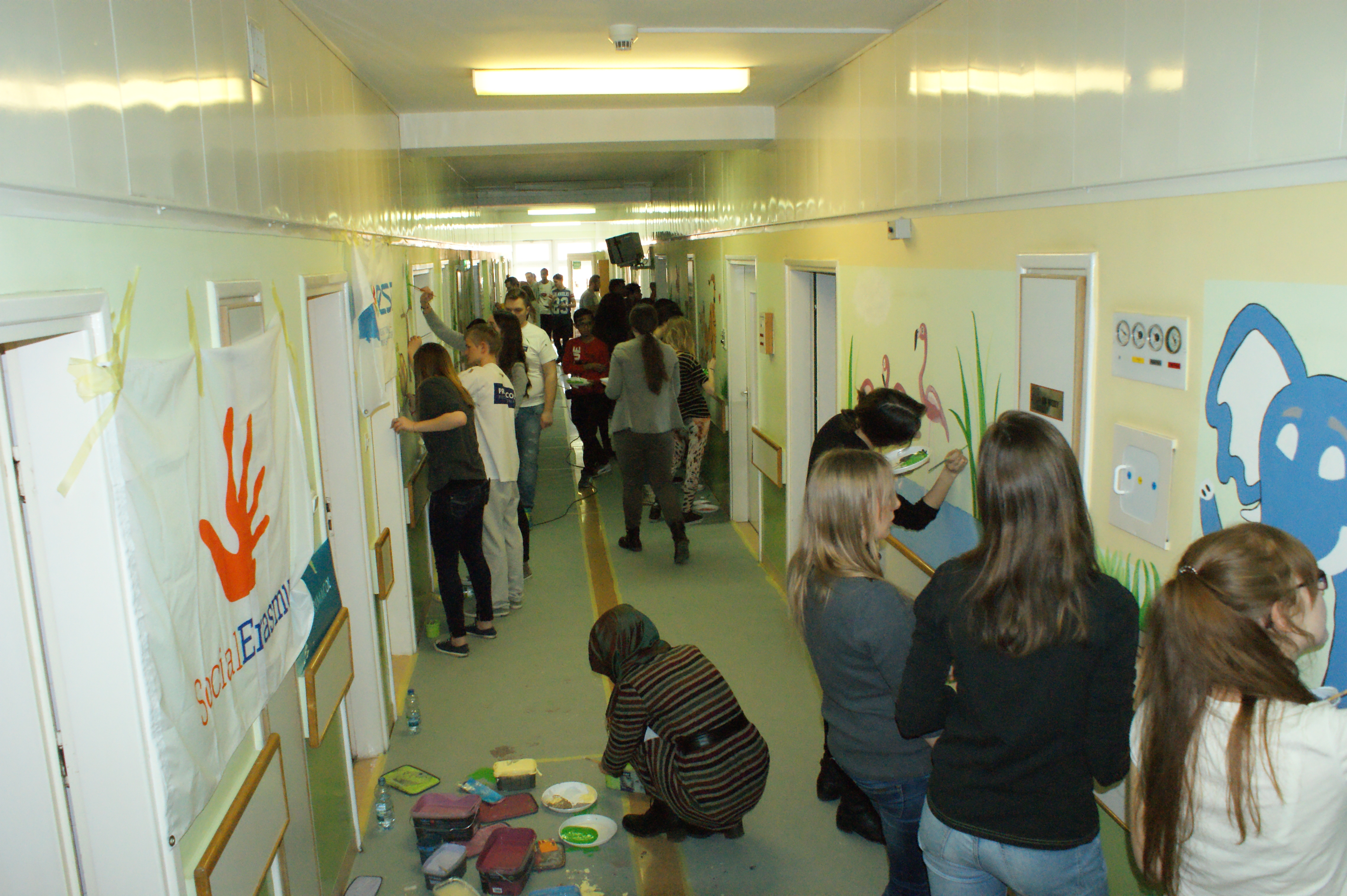A poważnie. Tradycją stało się już, że studiujący w Białymstoku w ramach programu Erasmus obcokrajowcy, przeznaczają jeden dzień na wspólną akcję charytatywną. Tradycją stało się też to, że malują wtedy korytarze lub świetlice w szpitalu dziecięcym.