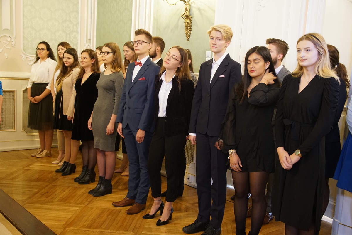 Tradycyjnie podczas inauguracji nowego roku akademickiego ślubowanie składają studenci, który podczas postępowania rekrutacyjnego na I rok nauki osiągnęli najlepsze wyniki.