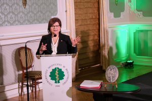Głos zabrała również Minister Maria Mrówczyńska, Podsekretarz Stanu w Ministerstwie Nauki i Szkolnictwa Wyższego, która odnosząc się do słów Minister Leszczyny dodała: - Wdzięczność, duma, ale też podziw dla determinacji całej społeczności lokalnej i akademickiej, że potrafili Państwo z gruzów przez 75 lat zbudować Uczelnię o światowej renomie.