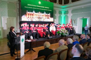 I dodała: - Macie naprawdę pełne prawo być bardzo dumni ze swojej Uczelni, z jej historii, z absolwentów, z tego wszystkiego, co zrobiliście tu Państwo i co robili wasi poprzednicy przez 75 lat, a ja jak zapewne wielu z nas, czuję wdzięczność i za to bardzo, bardzo dziękuję. Wypracowaliście sobie przez 75 lat niezwykłą markę (…) Dzisiaj trudno w Polsce znaleźć szpital, w którym nie byłoby lekarza po „medycynie” w Białymstoku i za to też bardzo dziękujemy, bo to też nie tylko lekarze, ale też farmaceuci, pielęgniarki, inne zawody medyczne, które wypuszczacie w świat.