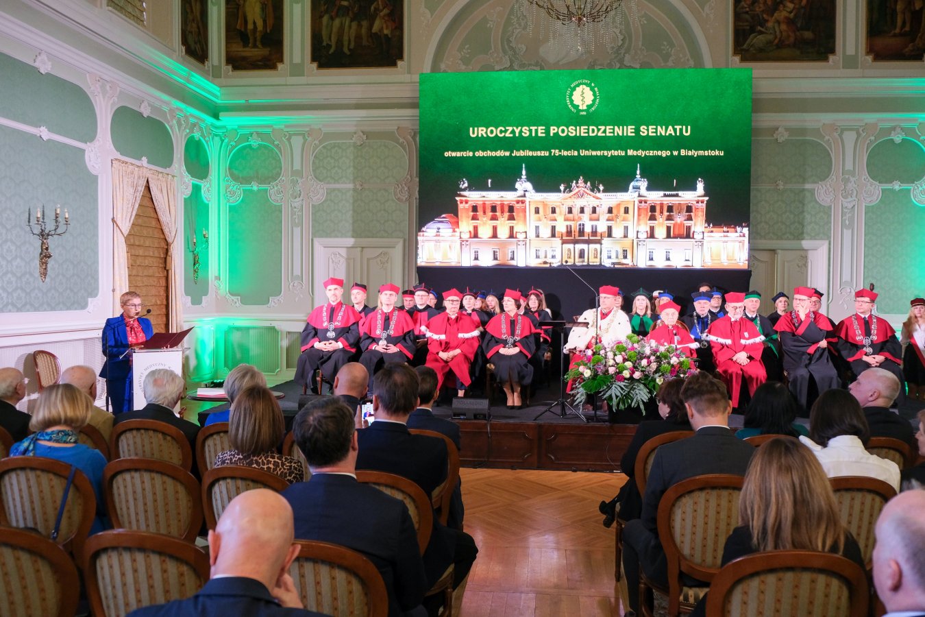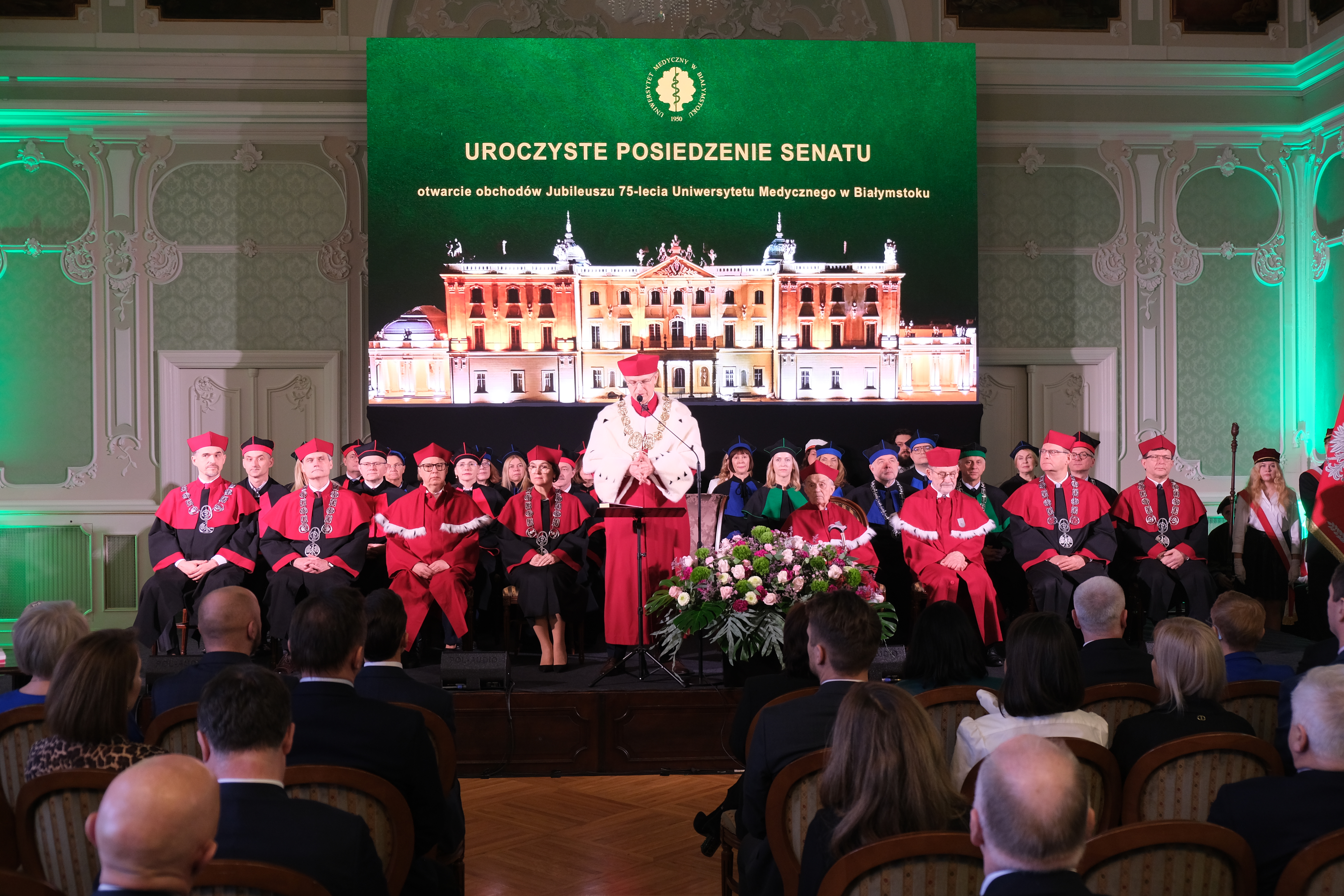 Data uroczystości była nieprzypadkowa – to właśnie 3 lutego 1950 roku Rada Ministrów zdecydowała o utworzeniu Akademii Lekarskiej w Białymstoku (szybko przemianowaną wkrótce na Akademię Medyczną), pierwszą tego typu uczelnię w Polsce północno-wschodniej. Jej siedzibą został zniszczony w 80 procentach Pałac Branickich. To miejsce symboliczne, perła baroku z bogatą historią medyczną, poczynając od XVIII wieku, gdy część apartamentów zajmowała Pałacowa Szkoła Położnych i nadworni medycy Branickich. Historia tego miejsca doskonale wpisuje się w misję Uniwersytetu Medycznego, łącząc tradycję z nowoczesnością.