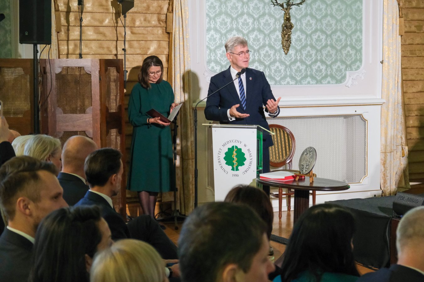 Aula Magna wypełniła się licznie emerytowanymi i obecnymi pracownikami, ale też gronem studentów. Na uroczystość przybyła Minister Zdrowia Izabela Leszczyna wraz z Wiceministrami: Katarzyną Kacperczyk i Jerzym Szafranowiczem. Ministerstwo Nauki i Szkolnictwa Wyższego reprezentowała Wiceminister prof. Maria Mrówczyńska. Specjalny medal na ręce Rektora przekazał Wicemarszałek Senatu Maciej Żywno. Licznie przybyli także podlascy posłowie, wojewoda podlaski, marszałek województwa, wiceprezydenci Białegostoku i inni znamienici goście. W wydarzeniu uczestniczyli także byli Rektorzy Uczelni: prof. Jan Górski (1993-1996, 1996-1999, 2002-2005, 2005-2008), prof. Jacek Nikliński (2008-2012, 2012-2016) i prof. Adam Krętowski (2016-2020, 2020-2024).