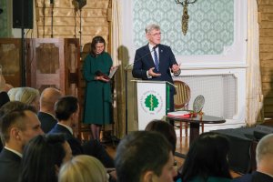 Ale te 75 lat to nie tylko kształcenie medyków, nie tylko dbałość o zdrowie i życie pacjentów, ale to także badania. O tym wielkim badawczym potencjale uczelni świadczy fakt, że to właśnie projekt tej uczelni uzyskał najlepszy wynik wśród kilkuset innych projektów opiniowanych przez Agencję Badań Medycznych (grant dla projektu „Innowacyjne produkty spożywcze jako żywność specjalnego przeznaczenia medycznego dla pacjentów z zaburzeniami metabolicznymi – badania przedwdrożeniowe” na ponad 8,5 mln zł – przyp. red.) Serdecznie gratuluję.