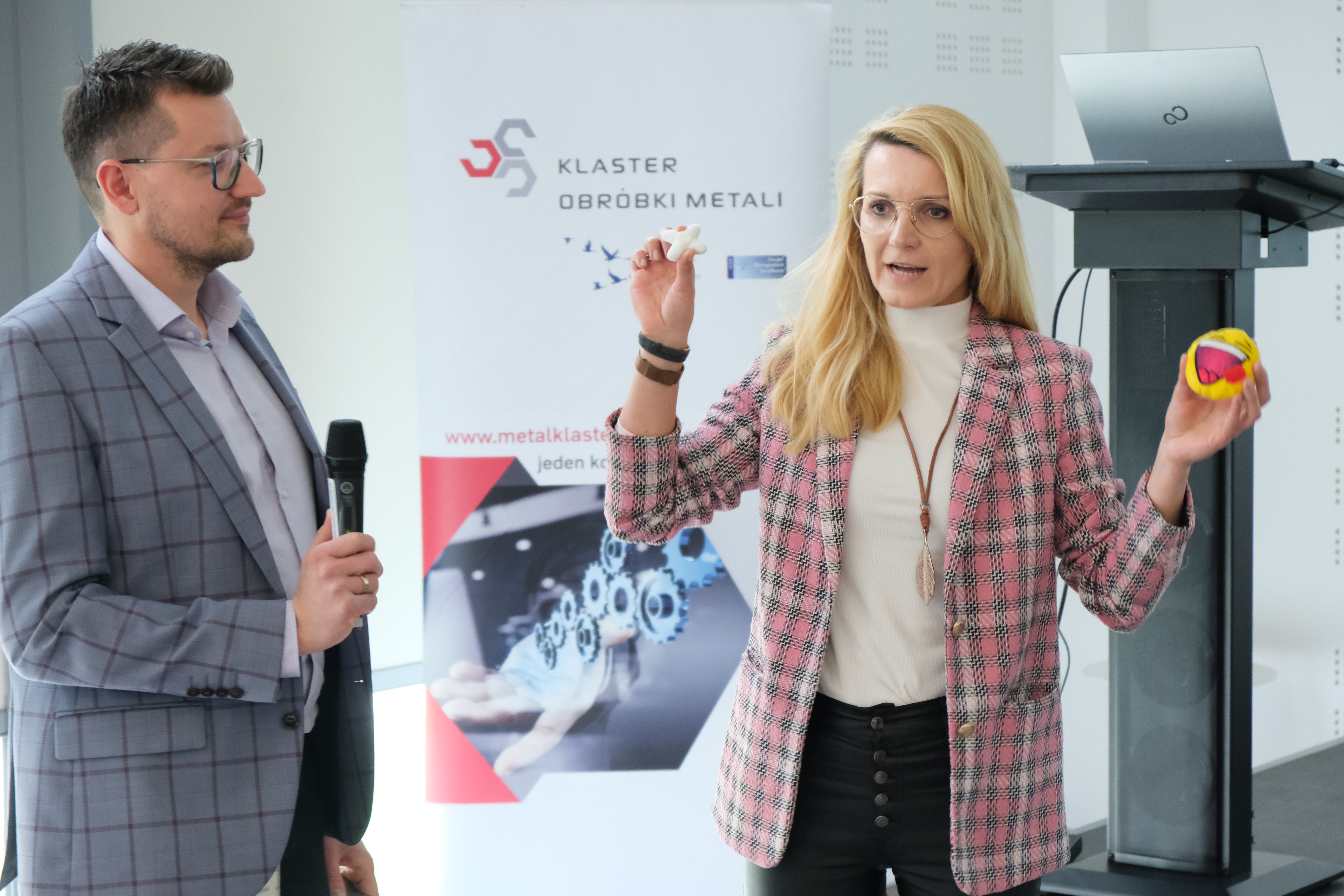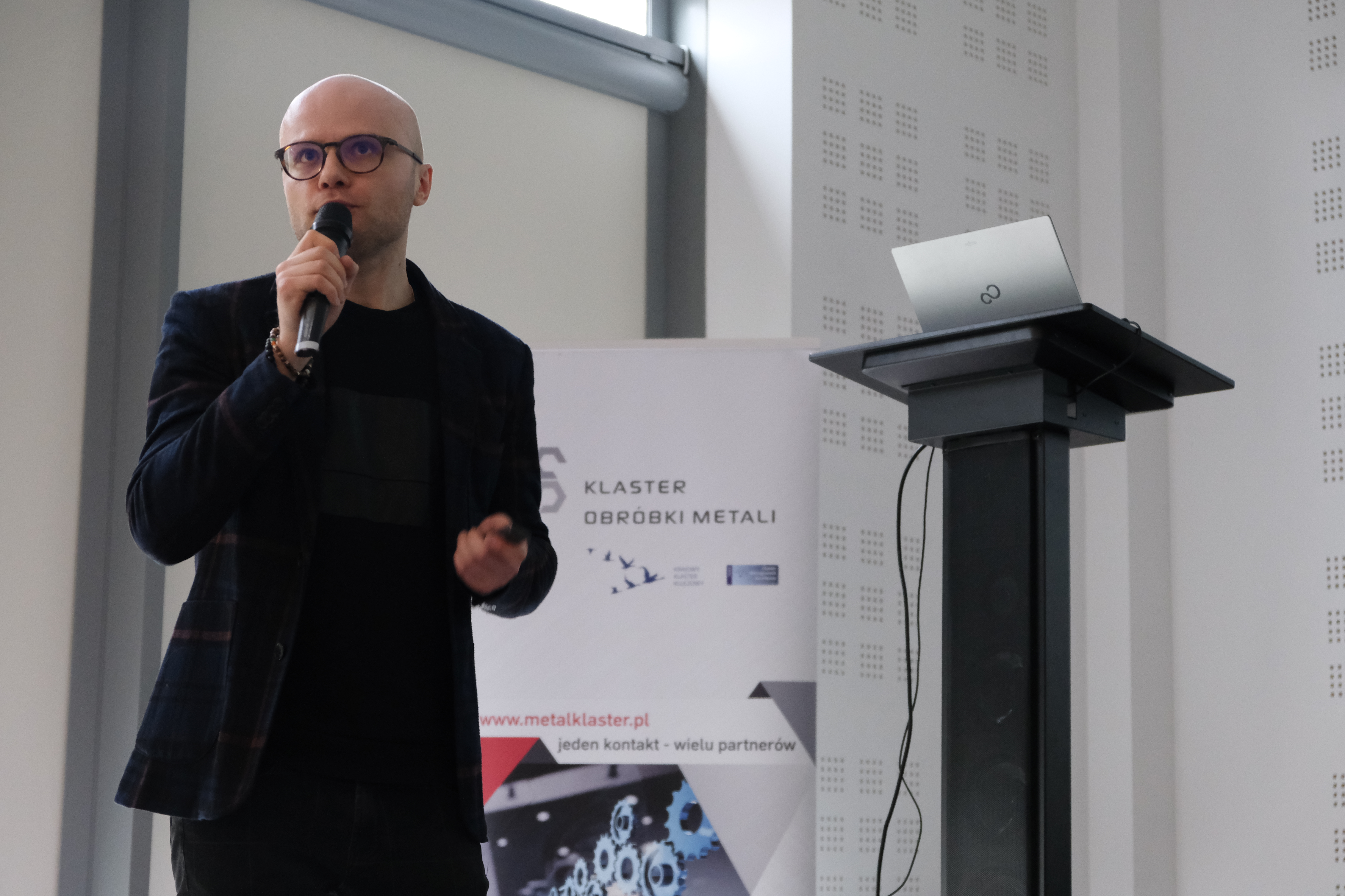 Sebastian Rynkiewicz, prezes zarządu Klastra Obróbki Metali: - Komunikacja między stronami to jedno z najważniejszych wyzwań tego projektu. Chcemy zbliżyć do siebie świat nauki i biznesu. Każda ze stron w inny sposób komunikuje to, co robi. My, jako podmiot odpowiedzialny za dzisiejsze spotkanie, przez pewien czas pracowaliśmy z naukowcami, nad ich wystąpieniami. Część prezentacji była już dostosowana do prostszego poziomu.