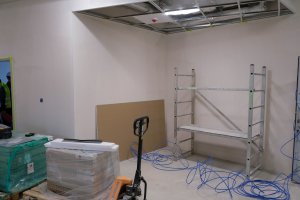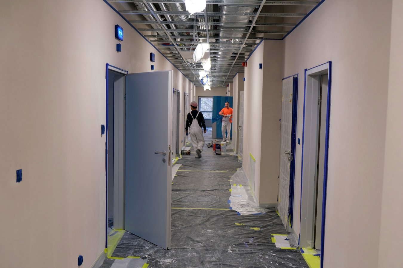 Na początku grudnia toczyły się już prace wykończeniowe w Centrum. Położone były już w większość wszystkie instalacje, praktycznie gotowe były klatki schodowe, na podłogach były już wykładziny i płytki, rozpoczęto instalację wind, a także szpachlowanie i malowanie ścian. Węzły sanitarne czekały na biały montaż. Wiosną potrzebne będą jeszcze drobne prace kosmetyczne związane z zagospodarowaniem zieleni wokół budynku.