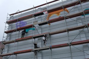 Rusztowania zasłoniły „słoneczko” w końcu kwietnia. Samo malowanie nowego obrazu zajęło trochę ponad tydzień. Oficjalne odsłonięcie nastąpiło 4 maja.
