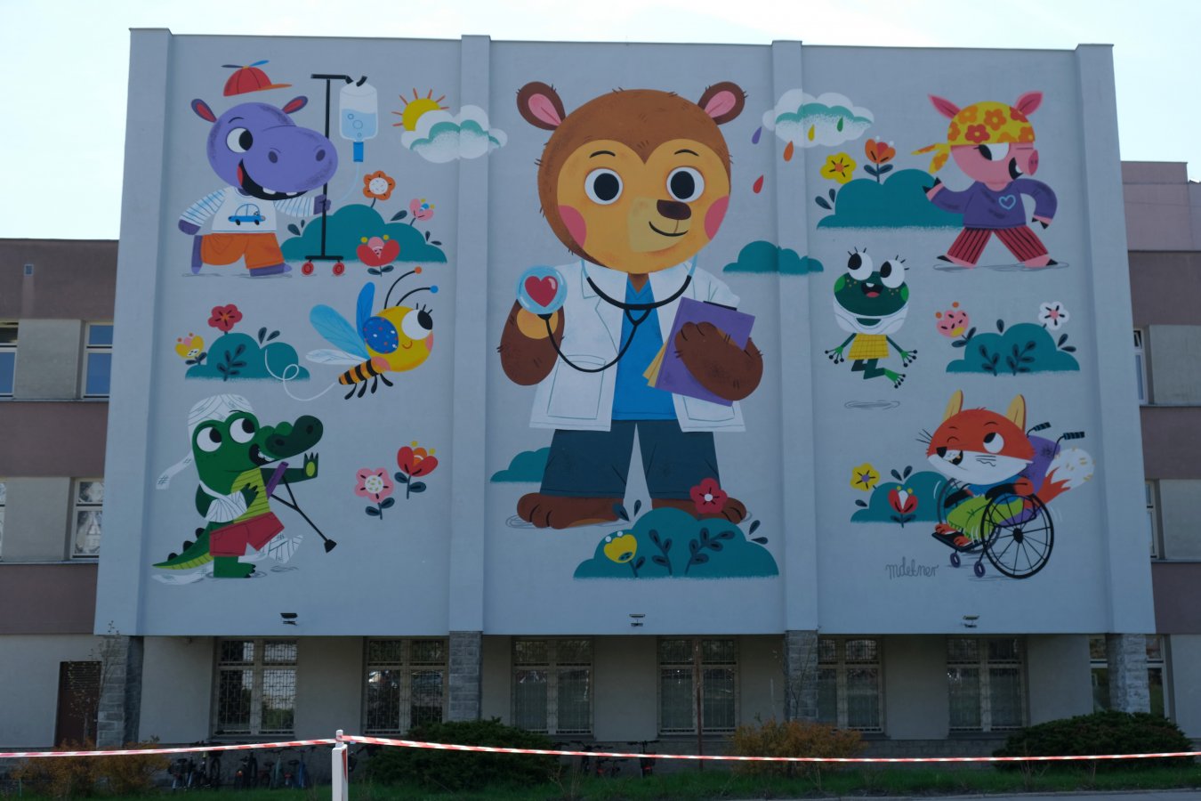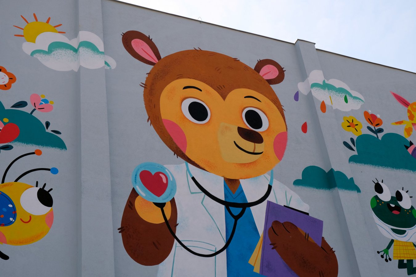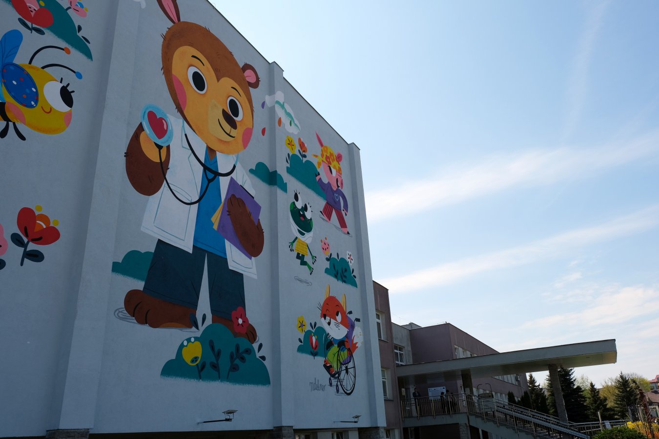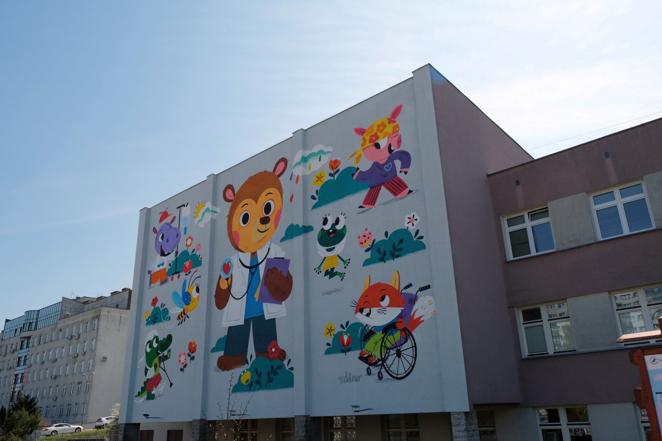 Nowy mural pojawił się na fasadzie Uniwersyteckiego Dziecięcego Szpitala Klinicznego w Białymstoku. Na początku maja „słoneczko” zostało zastąpione przed doktora misia i jego małych pacjentów. Przygotowania do stworzenia nowego obrazu trwały prawie dwa lata.