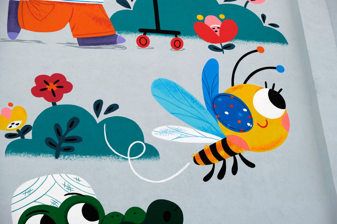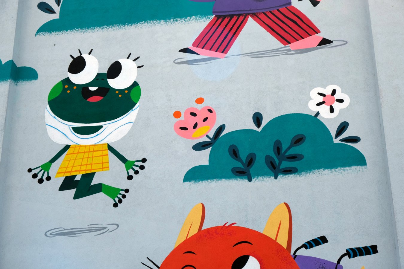 Każdy element nowego obrazu był konsultowany z psychologami, ale też dziećmi. Projekt muralu stworzyła Gosia Detner (ilustrowała książki dla dzieci m.in. Ewy Szelburg-Zarembiny, Juliana Tuwima, Małgorzaty Kiełbowicz czy Anety Grabowskiej) wraz z Jarosławem Zielińskim i Cezarym Chwicewskim. Za malowanie wzięli się artyści z Good Looking Studio.
