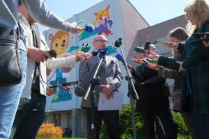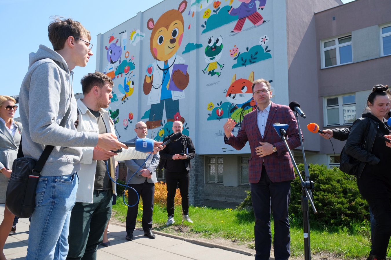 Cezary Chwicewski, dyrektor kreatywny Up To Date Festival: - Nowy mural ma służyć dzieciom, a nie dorosłym, którzy kiedyś chcieli być hipsterami. Ma służyć temu, aby dzieci czuły się bezpiecznie, wchodząc tutaj. Spędziliśmy wiele godzin nad „rozkminą” psychologiczną, na merytorycznych dyskusjach, jak kawałek ściany, który jest wizytówką szpitala może wpłynąć na dziecko wchodzące do szpitala. To musi być proste, na maksa proste, by rodzice mogli powiedzieć: „Idziemy do misia”. Miś miał być duży, prosty. Dziecko się boi i jest zaniepokojone, gdy idzie do szpitala. Jedna z dziewczynek powiedziała mi: „Jak jestem zestresowana, to krew długo się pobiera, a jak jestem wyluzowana, to szybko”. Jest to mural dla dzieci.