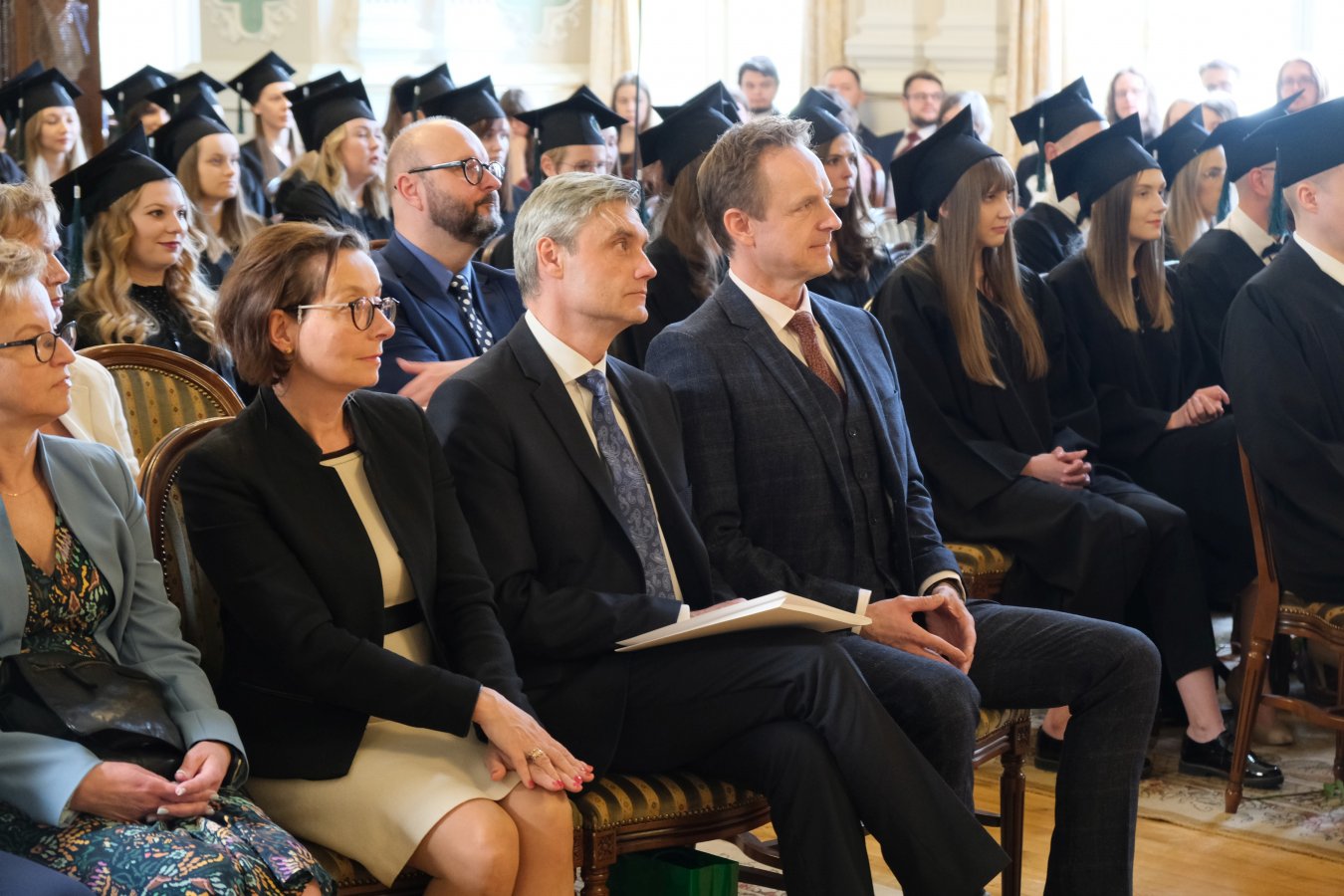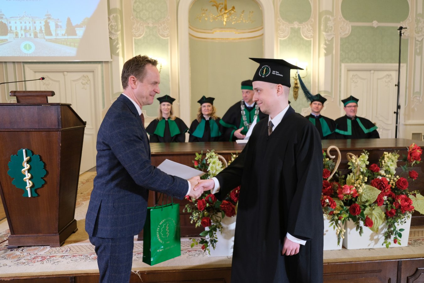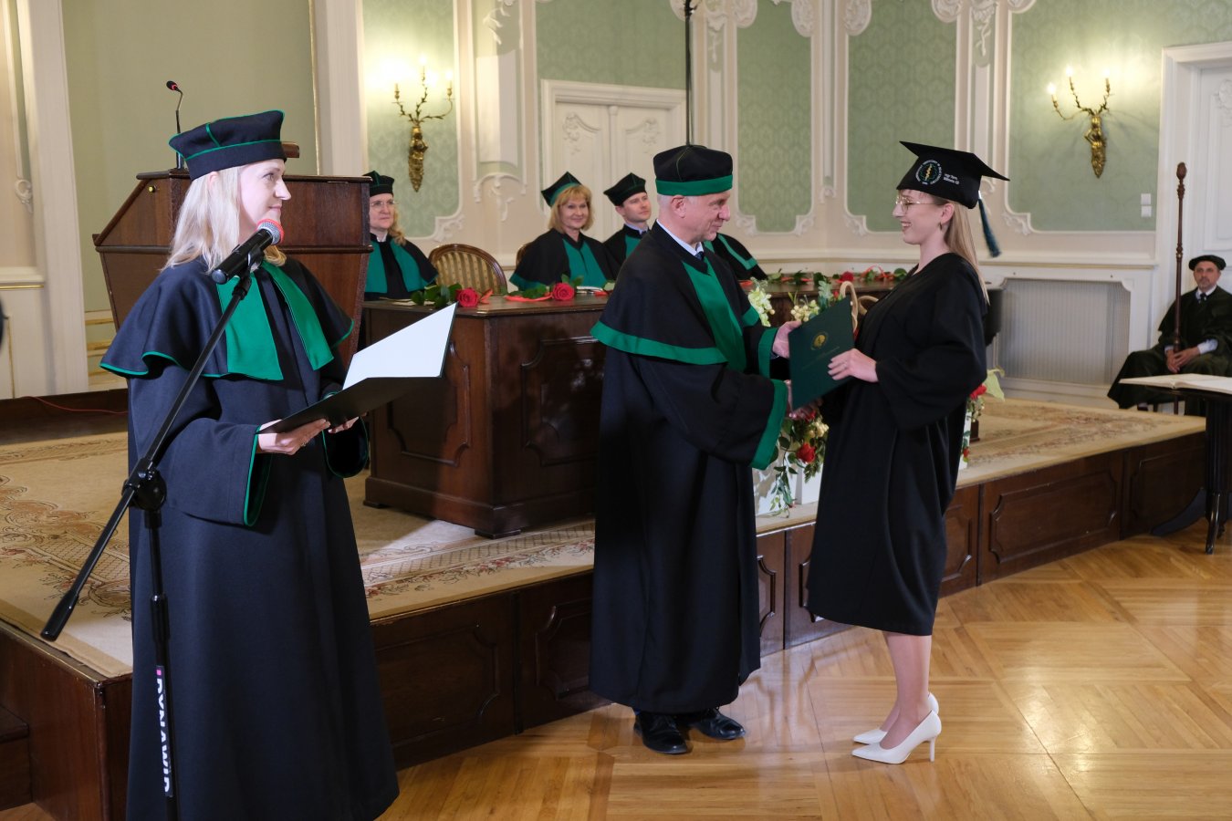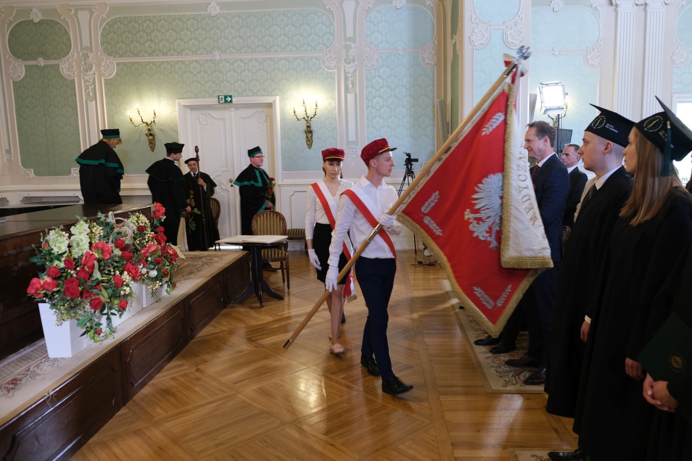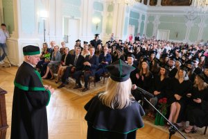 Uroczystość wręczenia dyplomów odbyła się 12 maja w Auli Magna Pałacu Branickich. Ranga spotkania ściągnęła na wydarzeniowe wielu zacnych gości. Były władze rektorskie, dziekańskie, ale też zaproszeni goście: Podlaska Wojewódzka Inspektor Farmaceutyczna w Białymstoku - mgr farm. Justyna Gosk-Frankowicz, Prezes Okręgowej Rady Aptekarskiej w Białymstoku – mgr farm. Tomasz Sawicki, Przewodnicząca Rady Uczelni UMB – dr Jolanta Koszelew, kierownicy jednostek organizacyjnych Wydziału Farmaceutycznego z Oddziałem Medycyny Laboratoryjnej i przedstawicielka Samorządu Studentów – Sylwia Ogniewska.