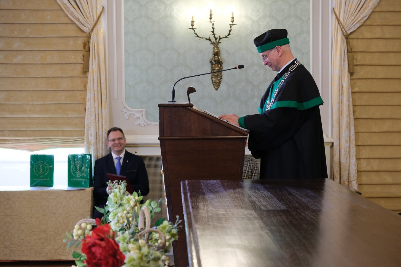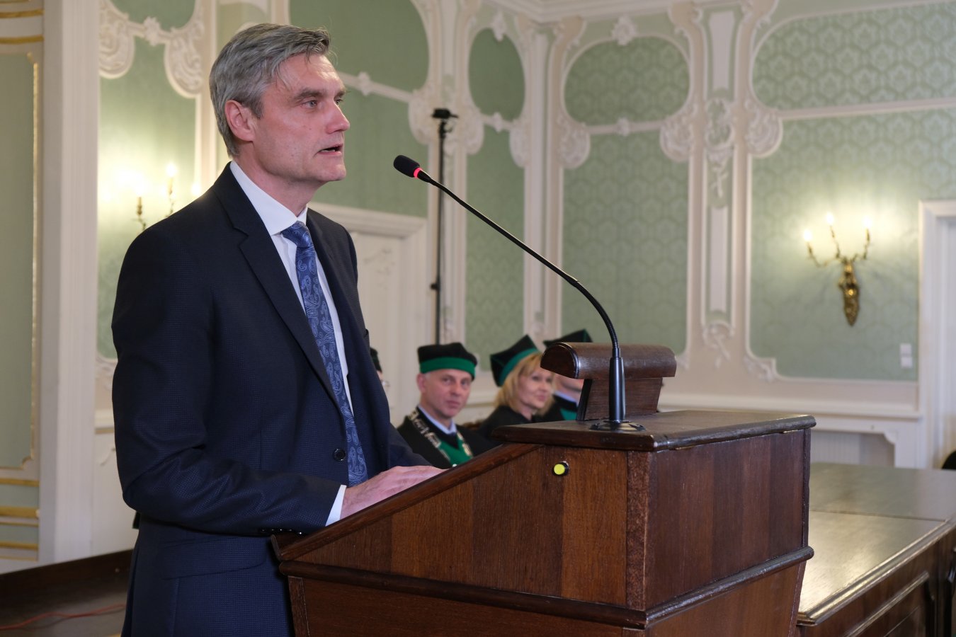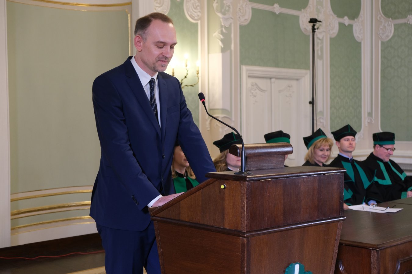 Prorektor ds. Nauki i Rozwoju UMB prof. Marcin Moniuszko zachęcał absolwentów do aktywności społecznej, życzył im odwagi we wprowadzaniu zmian w polskim systemie ochrony zdrowia, aby móc go reformować dla dobra pacjentów.