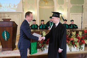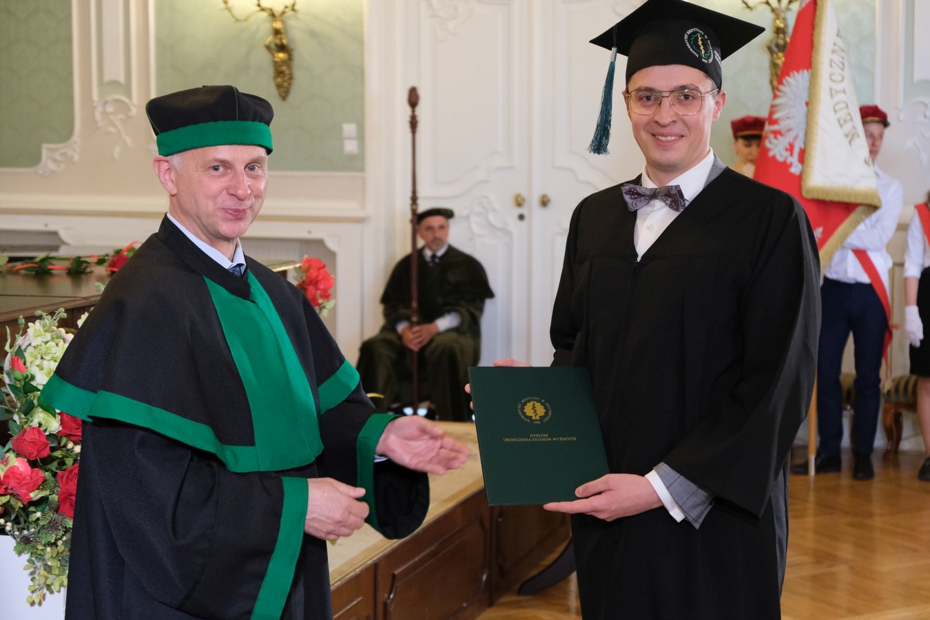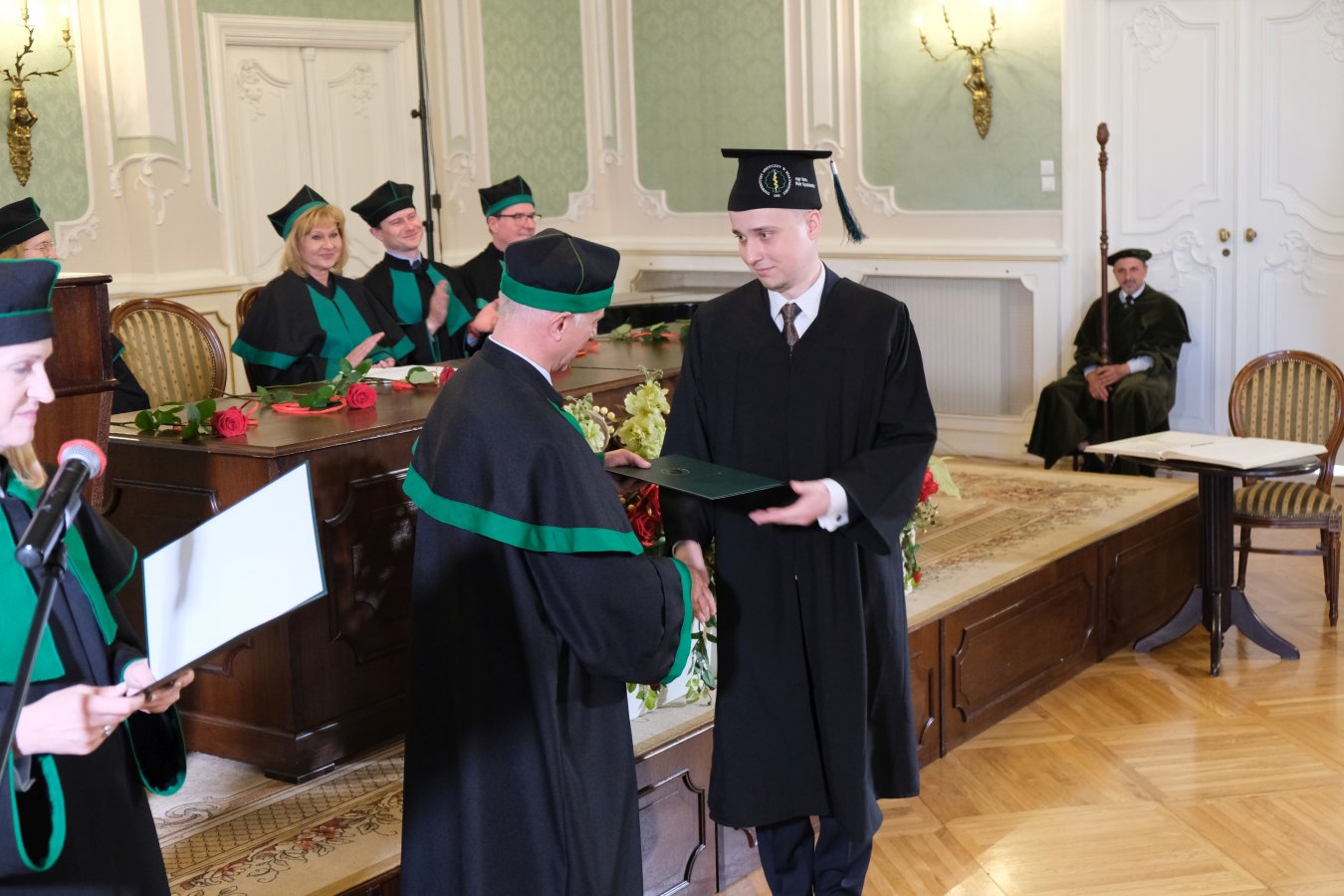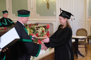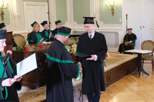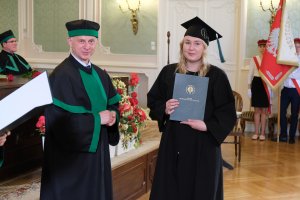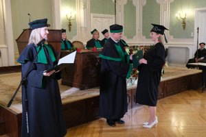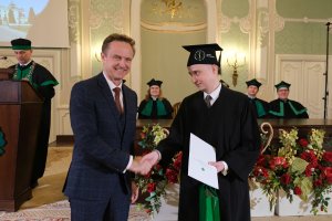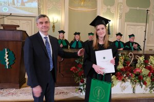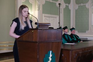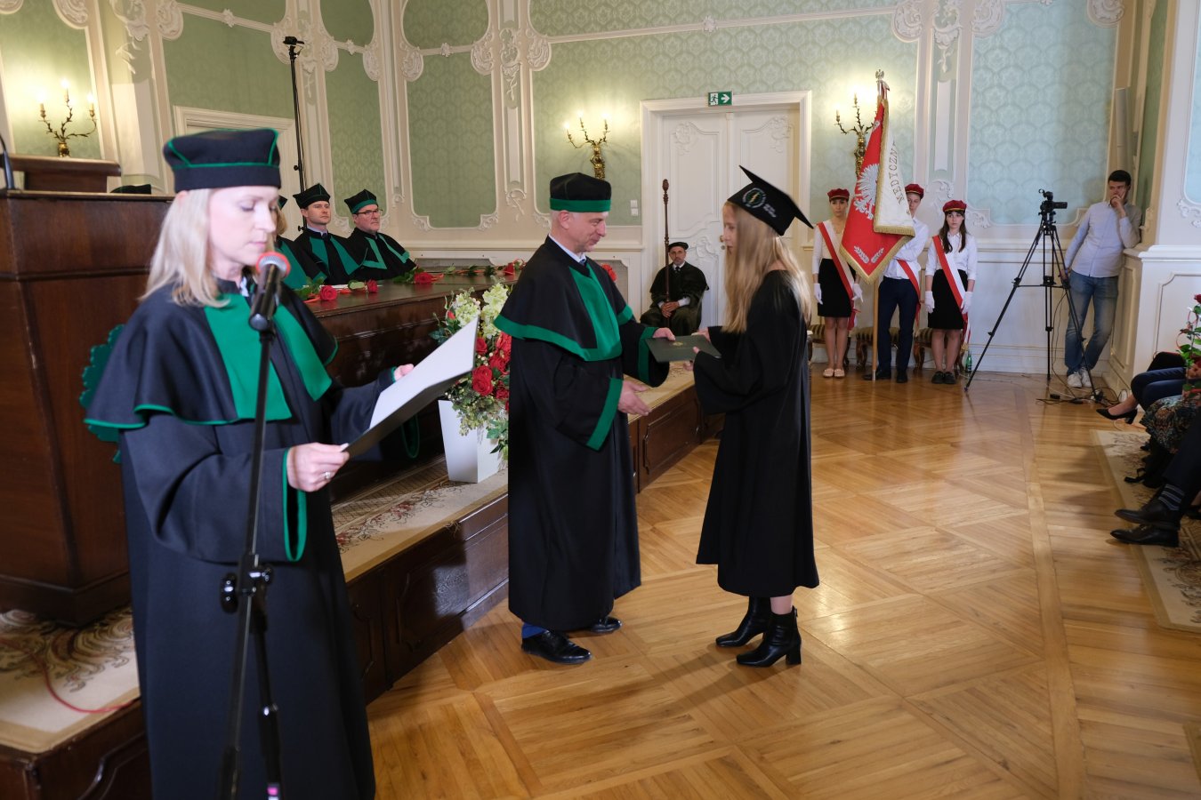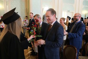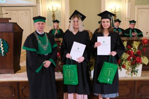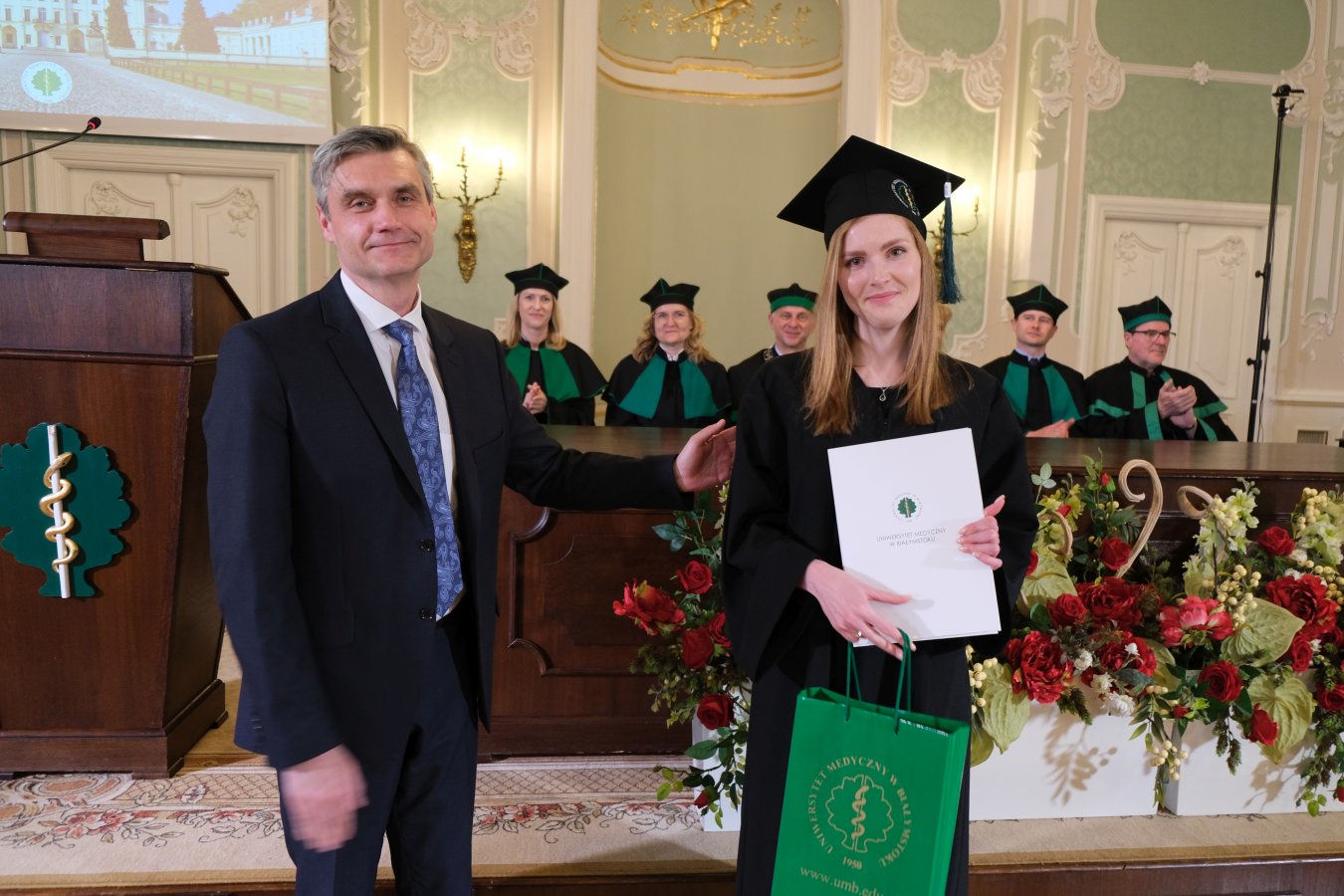 Wręczenie dyplomów to okazja, by podziękować tym najbardziej aktywnym. Piotr Ryszkiewicz odebrał honorowy dyplom Rektora UMB za ukończenie studiów ze średnią ocen 4,95. Za zaangażowane w pracę na rzecz Uczelni i społeczności studenckiej przez Dziekana prof. Wojciech Miltyka wyróżnione zostały: Justyna Jasiorowska i Katarzyna Polkowska.