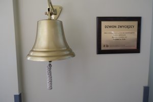 Dzwon specjalnie został zawieszony w korytarzu pomiędzy kliniką a poradnią, tak by symbolicznie zamknąć drogę na oddział. Trzykrotne uderzenie w niego będzie ostatnią czynnością jaką mały pacjent (albo jego rodzice) wykonają przed opuszczeniem szpitala i udaniem się do domu. Przy czym muszą głośno wypowiedzieć formułę: leczenie zakończone, wyruszam w kolejny rejs, kocham cię życie!
