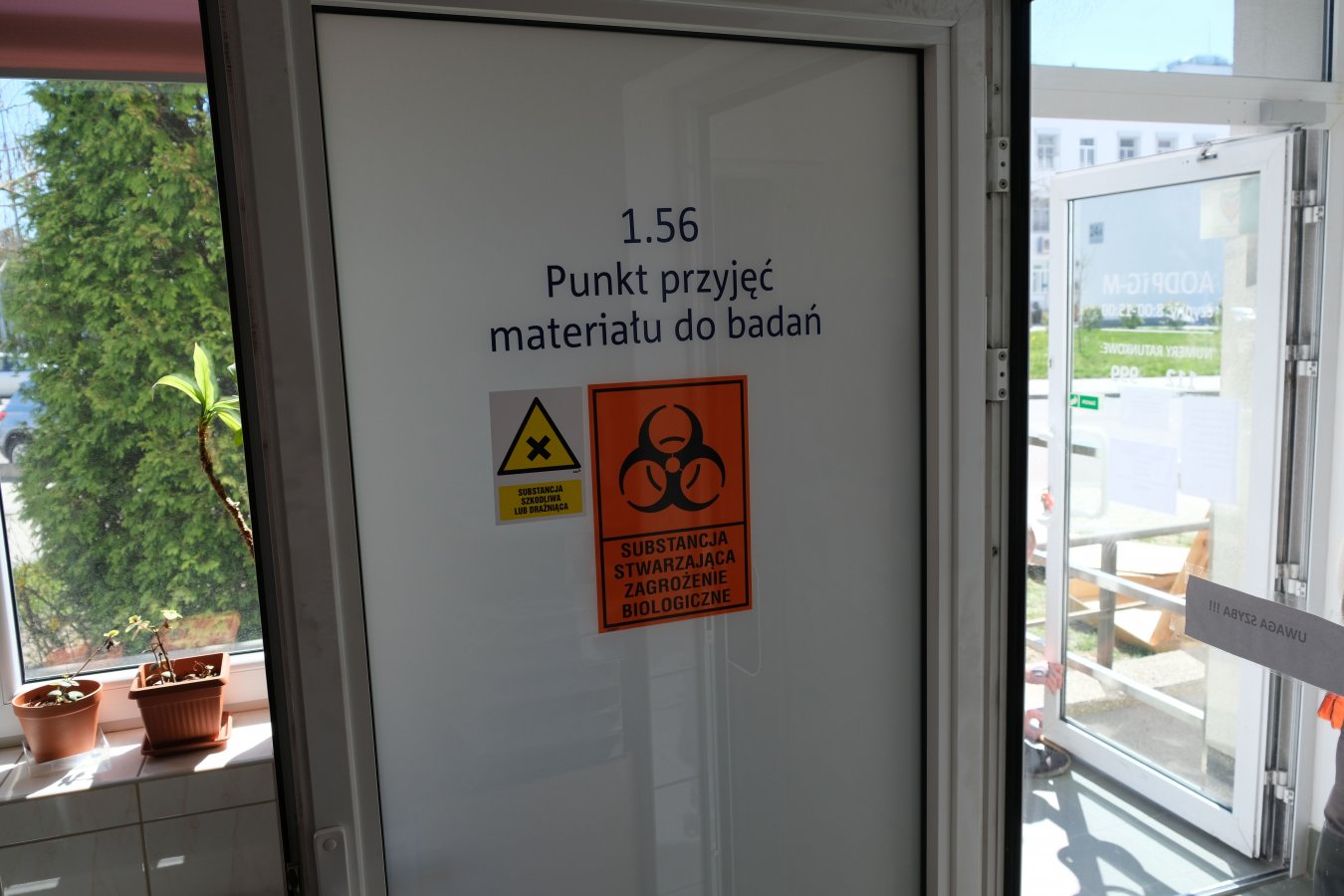 Wszystkie próbki ze szpitali z regionu przynoszone są do punktu pobrań, znajdującego się na parterze budynku. Czasami jest ich tak dużo, że zajmują cały korytarz i sąsiednie pomieszczenia (próbki są zabezpieczone i obłożone suchym lodem oraz umieszczane w lodówce).