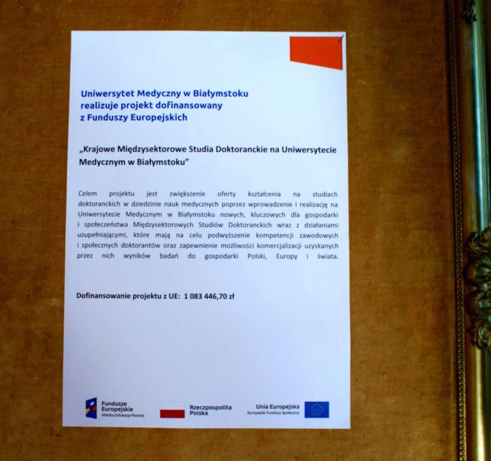 Studia Doktoranckie w ramach projektu „Krajowe Międzysektorowe Studia Doktoranckie na Uniwersytecie Medycznym w Białymstoku” są realizowane od 1 października 2018 i umożliwią uzyskanie stopnia doktora oraz komercjalizację uzyskanych wyników badań. Dzięki projektowi stworzono warunki do rozwoju współpracy nauki z otoczeniem społeczno-gospodarczym.