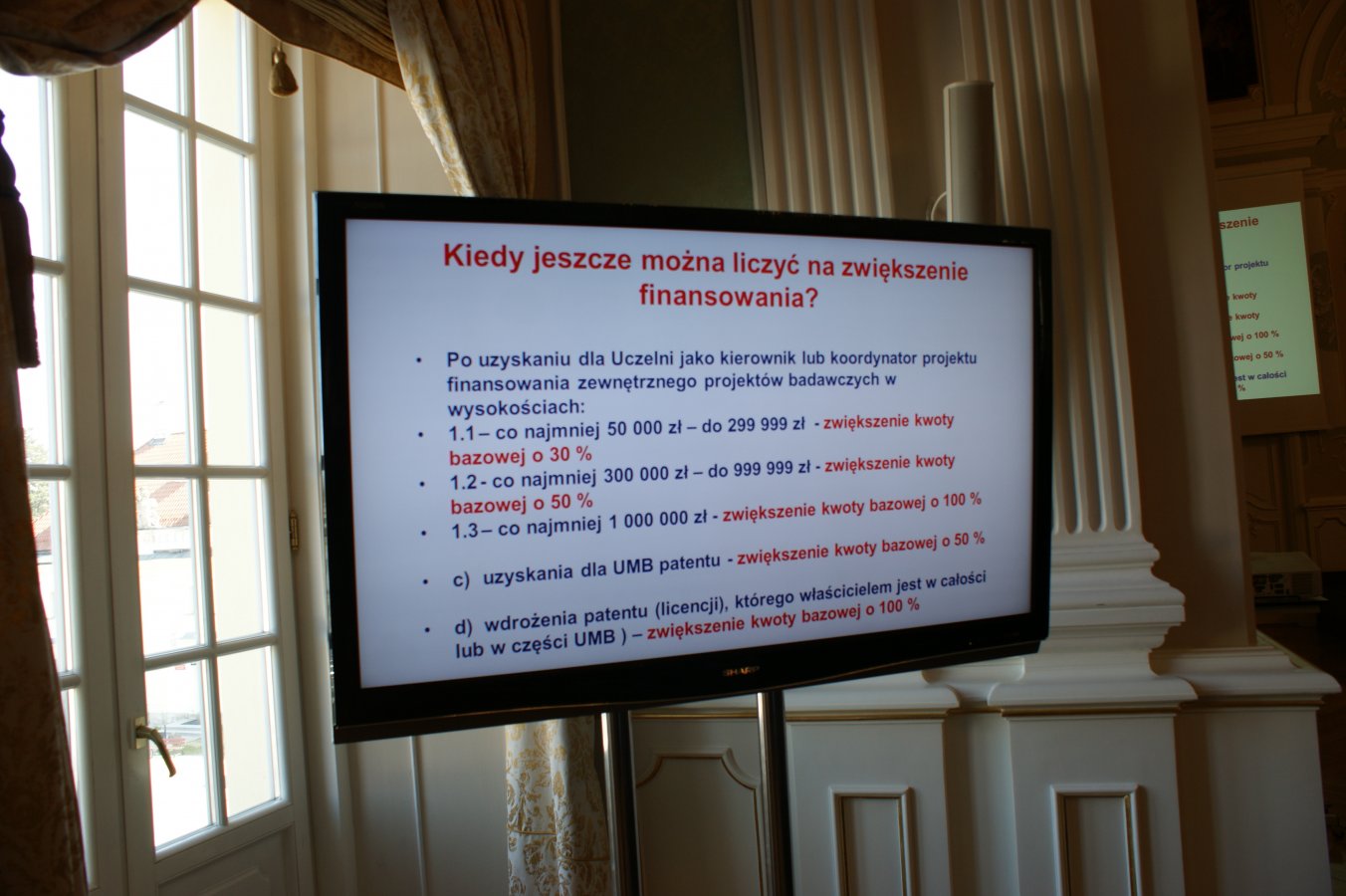 - Wdrożenia patentu/licencji, którego właścicielem jest w całości lub w części UMB – zwiększenie kwoty bazowej o 100 proc.