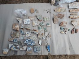 Odkryte warstwy kulturowe na dziedzińcu paradnym pełne są różnorodnych i niezwykle ciekawych z punktu widzenia historii i archeologii artefaktów. Dominującą grupę wśród wydobytych przedmiotów stanowią kafle piecowe (kilkaset fragmentów). Znaleziono je zarówno w obrębie budowli Raczkowiczów, jak też w licznych tzw. jamach śmieciowych na dziedzińcu. Część z nich została wykopana podczas prac porządkowych po II wojnie światowej kiedy oczyszczano z gruzów spalony Pałac Branickich, przygotowując go do odbudowy. Zapewne wówczas zniszczone pałacowe piece uprzątnięto, wrzucając fragmenty kafli do dołów. Dziś owe śmietniska mają niemal bezcenną wartość, zwłaszcza, że oryginalne pałacowe wyposażenie praktycznie się nie zachowało. Odnalezione w jamach kafle pokazują przepiękną, przekrojową historię rezydencji od XVI do XVIII wieku. Niektóre, nieszkliwione, z ornamentem roślinnym odsyłają nas do czasów Wiesiołowskich i „wczesnych” Branickich. Inne, finezyjnie zdobione, w kolorystyce typowej dla XVIII wieku zabierają nas w czasy barokowego przepychu i teatralizacji życia na dworze Branickich. Oprócz kafli, ziemia pod dziedzińcem paradnym skrywała także fragmenty ceramiki i to zarówno z IV wieku n.e. (ceramika kreskowana) jak też średniowiecznej (X-XII wiek) oraz ceramiki siwej z czasów Raczkowiczów (XV-XVI wiek) i ornamentowanej z XVII-XVIII wieku. Osobną grupę znalezisk, choć nie tak liczną stanowią monety – głównie boratynki (szelągi Jana Kazimierza), ale jest też moneta z czasów Jagiellonów oraz z czasów Królestwa Polskiego. Z pojedynczych zabytków odkopano m.in. pozłacane pokrętło (być może element zegara lub pozytywki), klamrę od buta, pierścionek z brązu, klucze, guziki od munduru, a nawet granat puszkowy z okresu I wojny światowej. Wśród znalezisk są także buteleczki po lekach, które związane były z funkcjonowaniem w Pałacu przez cały okres I wojny światowej niemieckiego szpitala polowego. Badania archeologiczne odsłoniły nie tylko architekturę, elementy wystroju dawnych pomieszczeń ale również przyczyniły się do poszerzenia wiedzy o jadłospisie nowożytnych właścicieli rezydencji. W archeologicznych wykopach odsłonięto bowiem bardzo duże warstwy ości rybich, a także kości (zwłaszcza drobiowych).