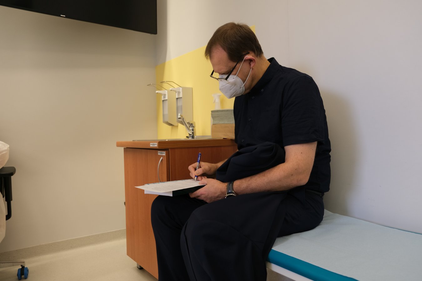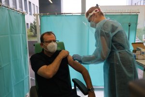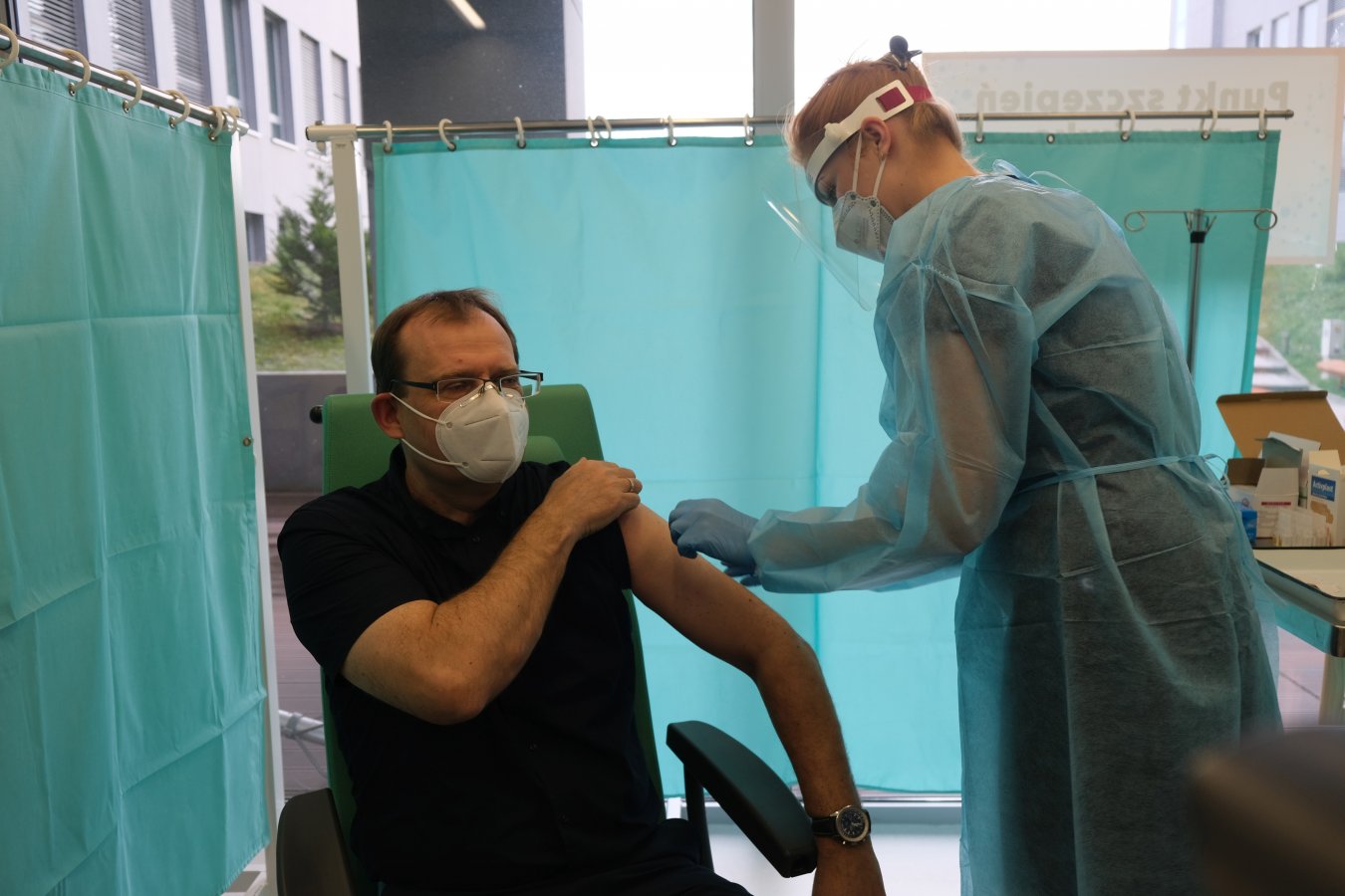 Rektor UMB prof. Adam Krętowski tuż po zaszczepieniu: - Rewelacja, żadnego bólu. Myślę, że do szczepionek przekonujemy na co dzień, nie dzisiaj. Uważam, że rozsądnymi argumentami każdego można przekonać. To nie musi być nachalna kampania, ale kto chce być odpowiedzialny, kto chce dbać o zdrowie swoje i swoich bliskich, będzie się szczepił - podkreśla rektor UMB prof. Adam Krętowski.