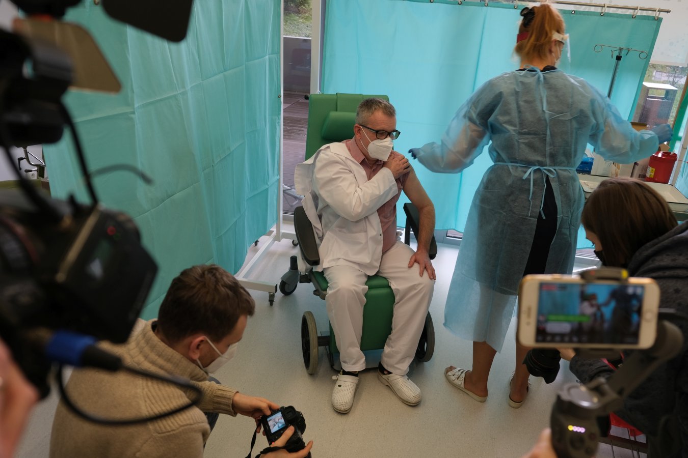 Szczepienia pierwszych osób w Uniwersyteckim Szpitalu Klinicznym w Białymstoku to było medialne show. Dziennikarzy, fotoreporterów i operatorów kamer było więcej niż osób, które miały się zaszczepić.