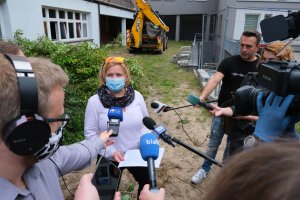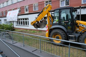 14 lipca symbolicznie wbito pierwszą łopatę pod budowę placu zabaw, który stanie przy Klinice Onkologii i Hematologii Dziecięcej szpitala UDSK.