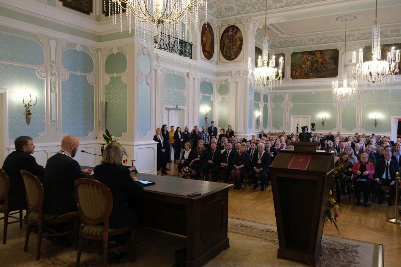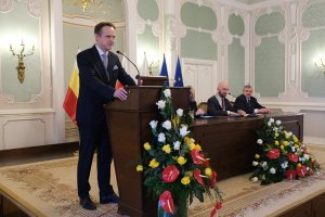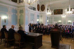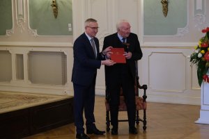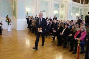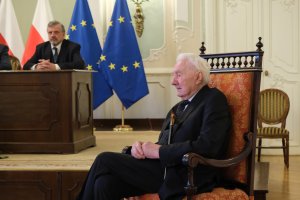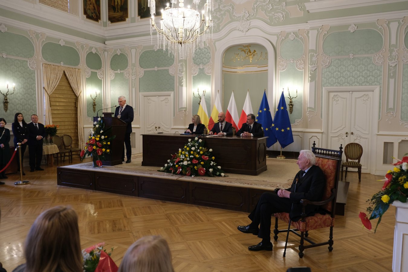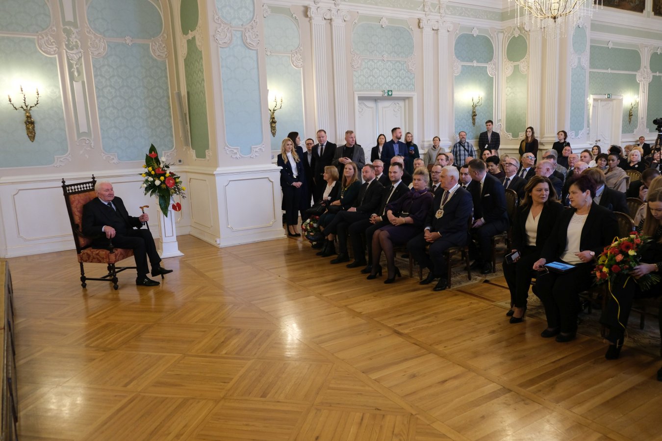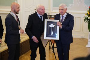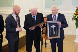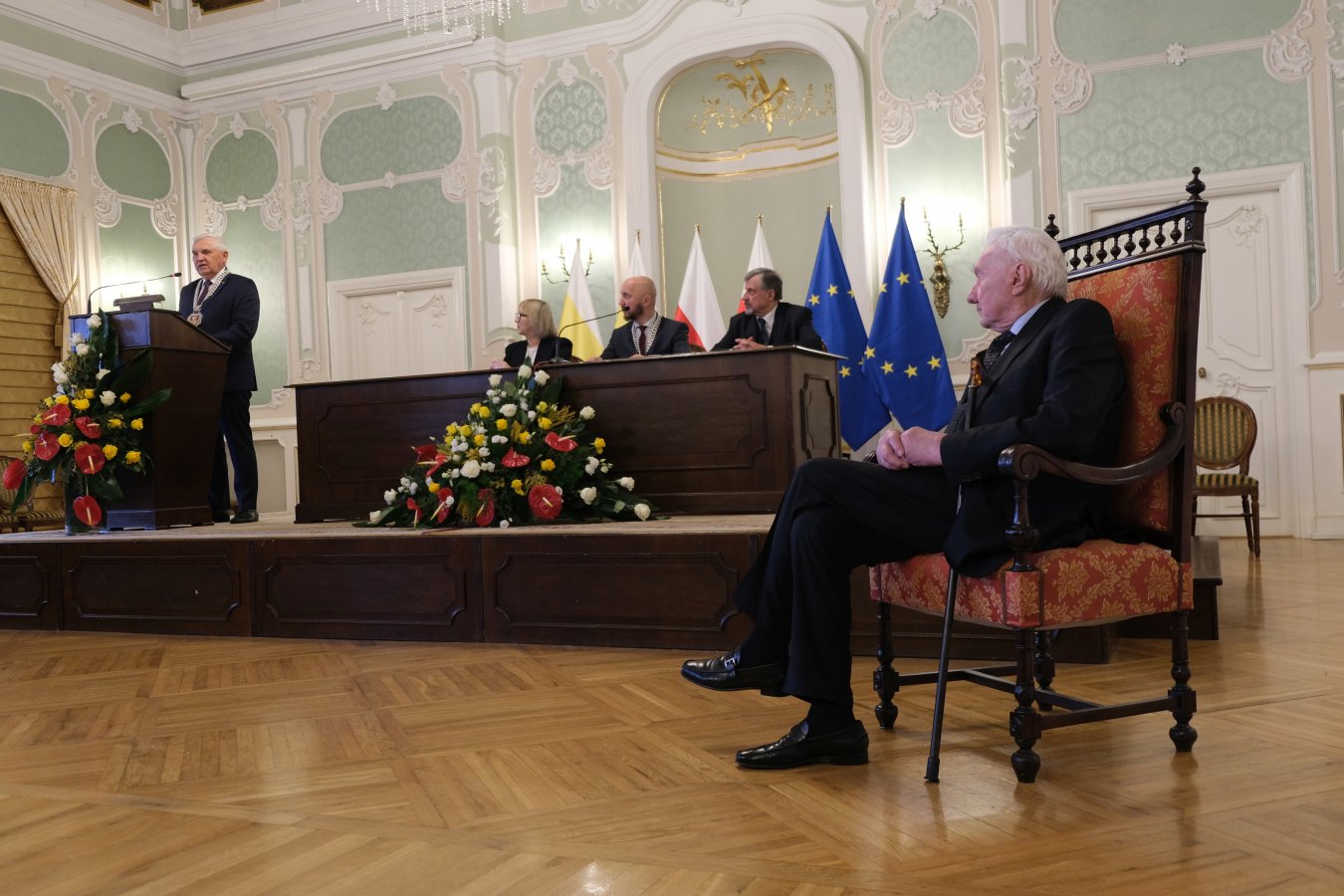 Prof. Marcin Moniuszko, Prorektor ds. Nauki i Rozwoju UMB: - To wielkie święto Białegostoku, ale to także wielkie święto Uniwersytetu Medycznego w Białymstoku. Jesteśmy bardzo wdzięczni za tę inicjatywę, dziękujemy włodarzom miasta. 20 lat temu, w tej auli, otrzymywał pan tytuł honorowego doktora ówczesnej Akademii Medycznej w Białymstoku. Zbieżność miejsc nieprzypadkowa.