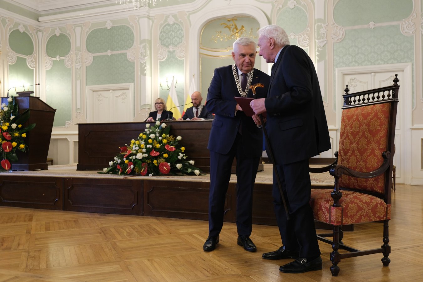 - Honorowe obywatelstwo to wyjątkowe wyróżnienie, które przyznajemy tym, którzy wnoszą nieoceniony wkład w rozwój naszego miasta i społeczności. Prof. Marian Szamatowicz to nie tylko wybitny lekarz, ale też człowiek o wielkim sercu, który poświęcił swoje życie nauczaniu i badaniu. Jego wkład w polską medycynę jest nieoceniony, a moment, w którym razem ze swoim zespołem dokonał pierwszego w Polsce zabiegu in vitro, stanowi kamień milowy w historii polskiej nauki i medycyny. Jego determinacja i zaangażowanie umożliwiło parom z problemem poczęcia potomstwa spełnienie marzenia o rodzicielstwie – powiedział w laudacji Łukasz Prokorym, przewodniczący Rady Miasta.