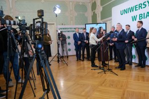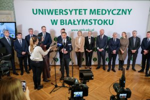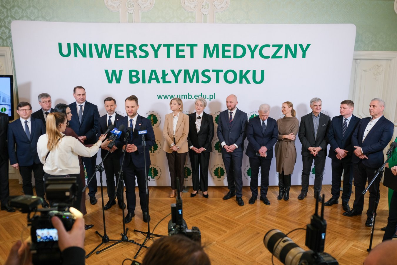 O przyznanych środkach poinformowano na specjalnej konferencji prasowej, która odbyła się w Auli Magna Pałacu Branickich. Jej gospodarzem był Wojewoda Podlaski Jacek Brzozowski, a uczestniczyli w niej m.in. Marszałek Województwa Podlaskiego Łukasz Prokorym wraz z całym Zarządem Województwa. Uczelnia była reprezentowana przez Rektora prof. Marcina Moniuszkę wraz z Prorektorami: prof. Adamem Krętowskim, prof. Januszem Dzięciołem oraz prof. Adrianem Chabowskim. W imieniu szpitala USK głos zabrał Dyrektor Szpitala prof. Jan Kochanowicz.