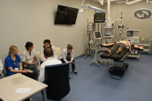 Z prorektorem Chabowskim rozmawiamy w sali, w której studenci akurat ćwiczą reanimację pacjenta. Jest zaintubowany, właśnie odbywa się masaż serca, w pewnym momencie studentka wykonuje defibrylację. Jej koledzy na jej sygnał odchodzą od łóżka. - Takich procedur student nie ma szans wykonać w szpitalu. Przede wszystkim jest ich niewiele, a po drugie są one szalenie ryzykowne i z racji śmiertelnego zagrożenia dla takiego pacjenta, wykonują je tylko specjaliści. A w centrum można to ćwiczyć do woli. Co więcej „nasz pacjent” w każdej chwili może mieć dowolne objawy - dodaje prof. Chabowski.