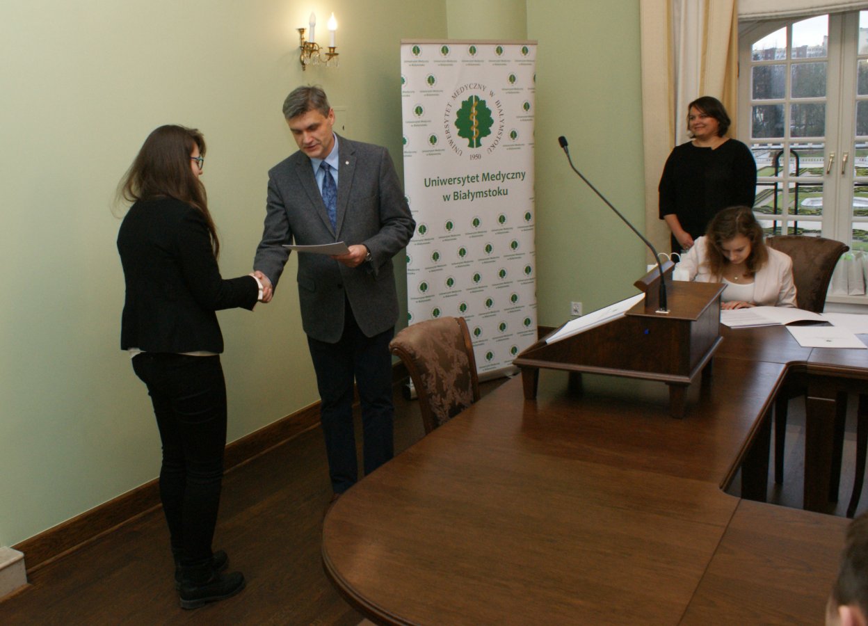 Stypendium otrzyma w sumie 30 osób. 26 listopada w Sali Senatu UMB studenci odebrali decyzje rektora, ale też podpisali stosowne dokumenty. Dzięki czemu można było wysłać przelewy na ich konto (wraz z wyrównaniem od października). Stypendia rektorskie wahają się w granicach 550-850 zł.
