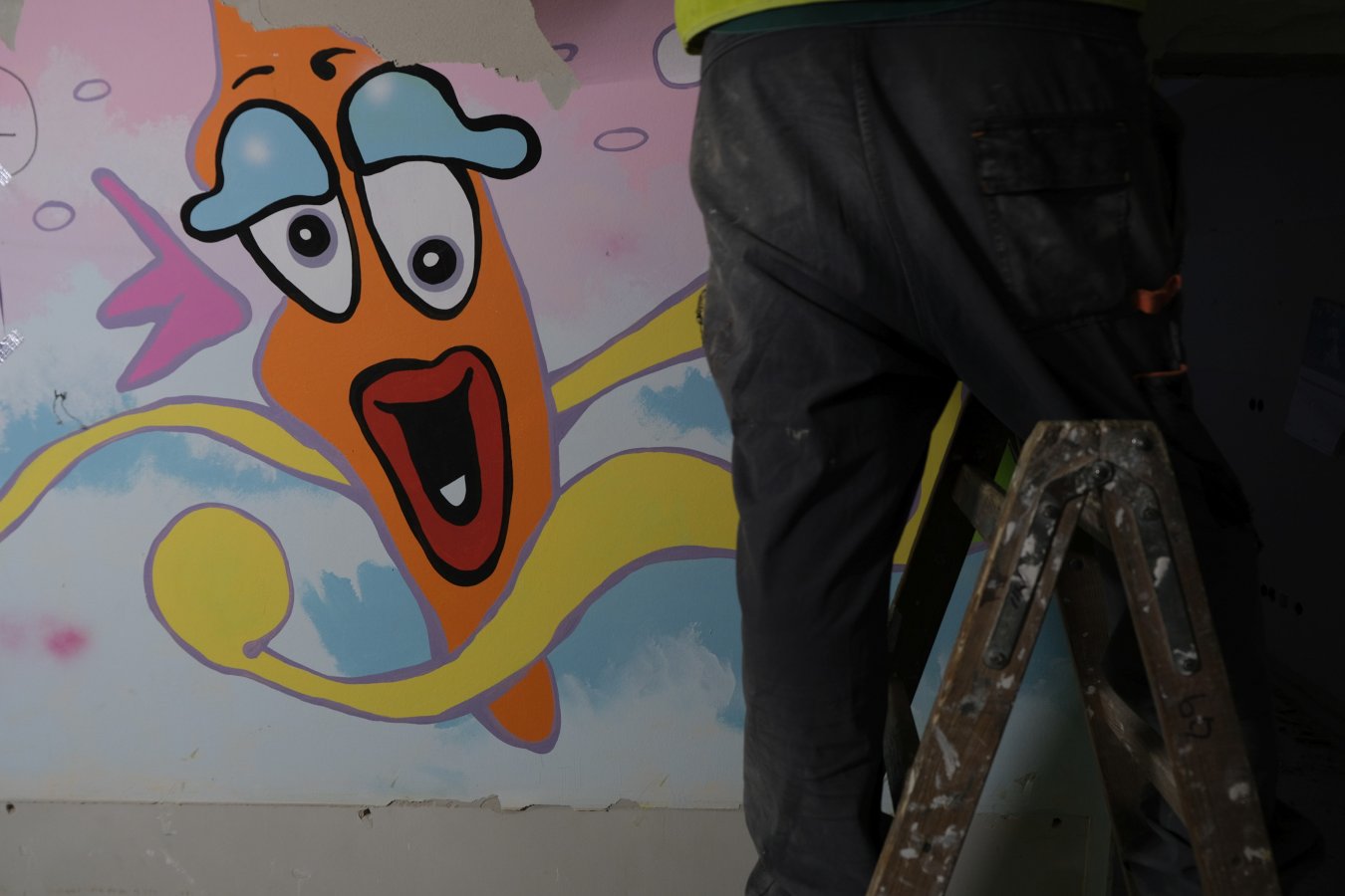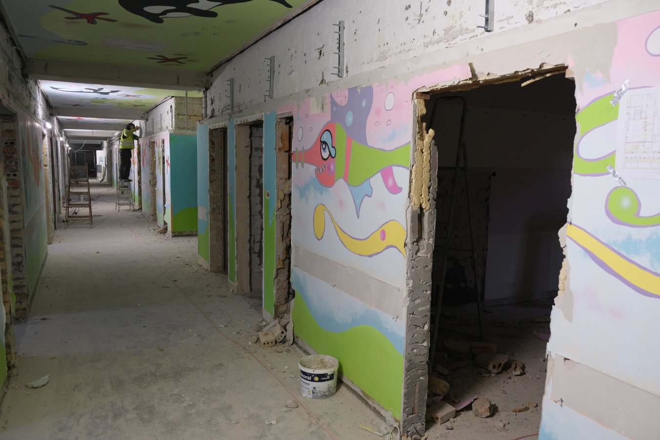 Zmianą najbardziej rzucającą się w oczy jest nowy mural na fasadzie szpitala. Nie ma już „słoneczka”, a jest kolorowy doktor miś i jego mali pacjenci. Dodatkowo udało się odświeżyć elewacje budynków niższej części szpitala.