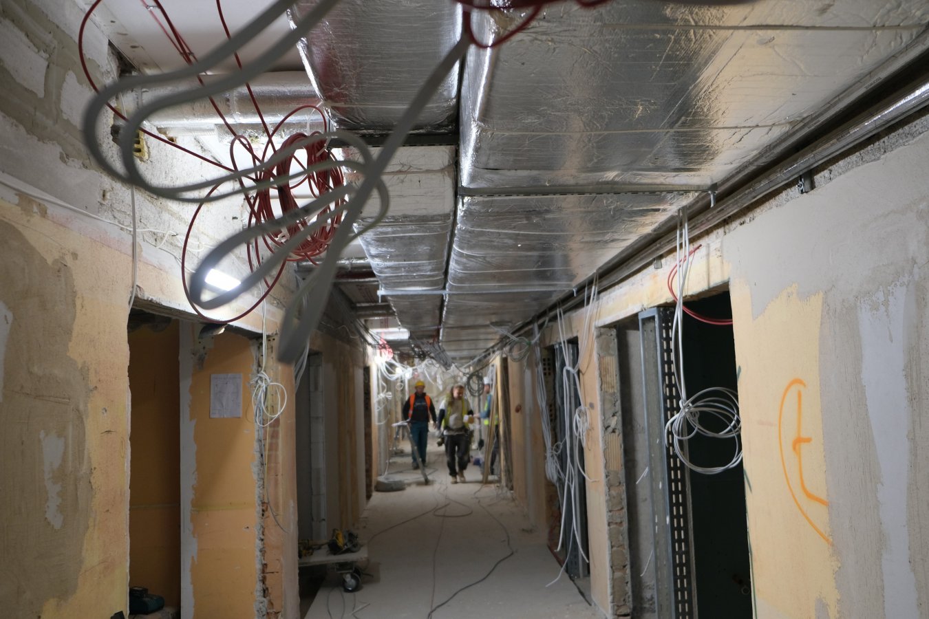 Udało się dlatego, że remont nie odbywał się poziomo, na pojedynczych piętrach, a w pionie, od razu na wszystkich piętrach jednocześnie. Czasowo zamknięte było pół budynku, a w drugiej połowie musiały zmieścić się wszystkie kliniki. Kiedy po roku zakończył się remont tej części, wszystkie kliniki przeniosły się na drugą stronę obiektu.