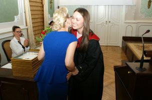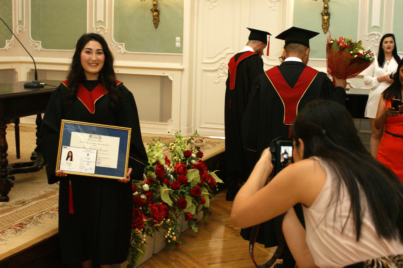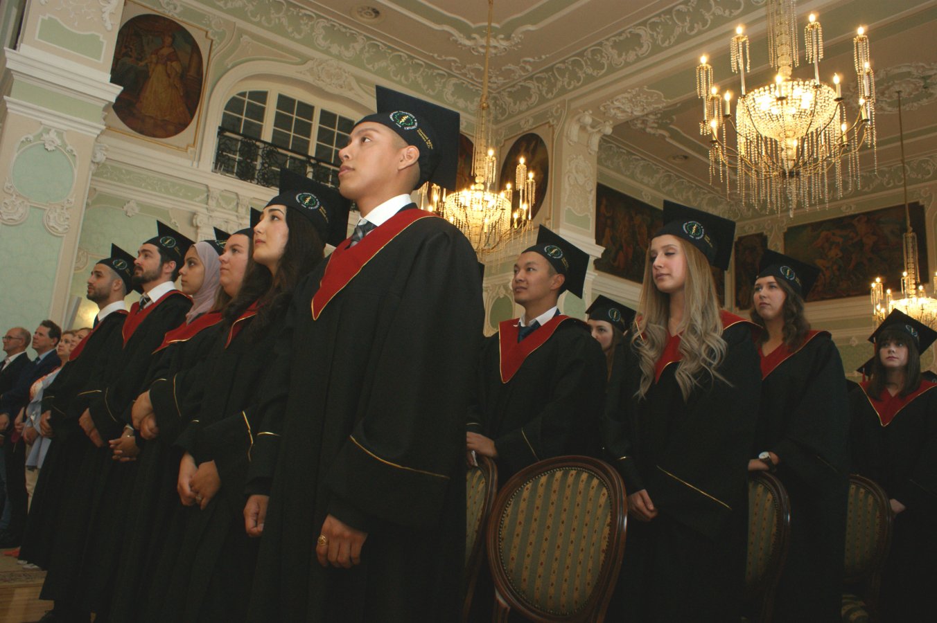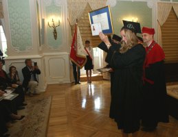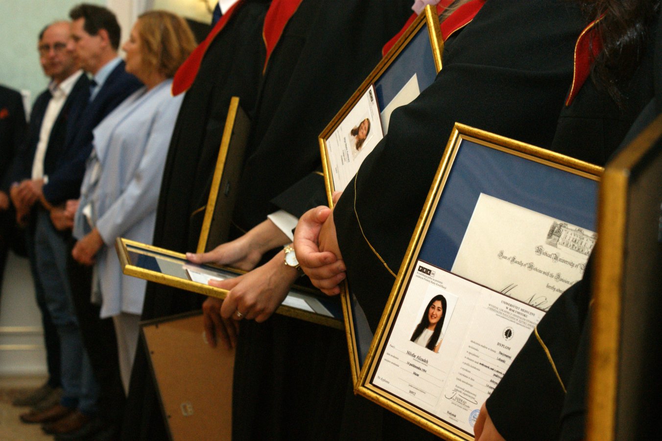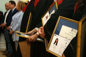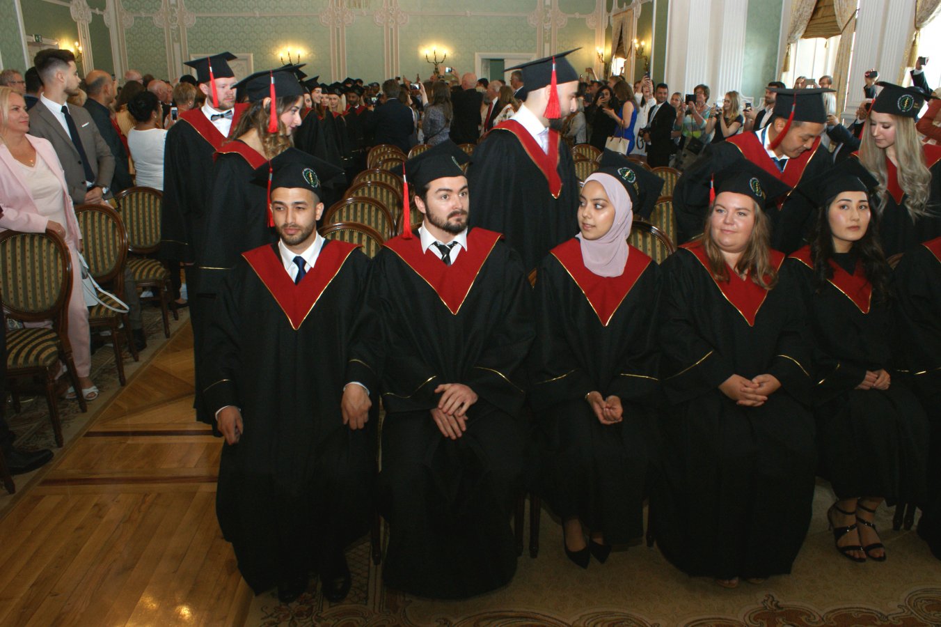 Uroczystość rozdania dyplomów miała bardzo okazałą oprawę. Odbywała się w reprezentacyjnej Aula Magna, którą szczelnie wypełnili przybyli z całego świata bliscy studentów. Absolwenci ubrani byli w czarne togi z czerwonymi elementami, a na głowach - birety z haftowanym logo uczelni, ale też własnym imieniem oraz skrótem „MD” potwierdzającym, że są już lekarzami.