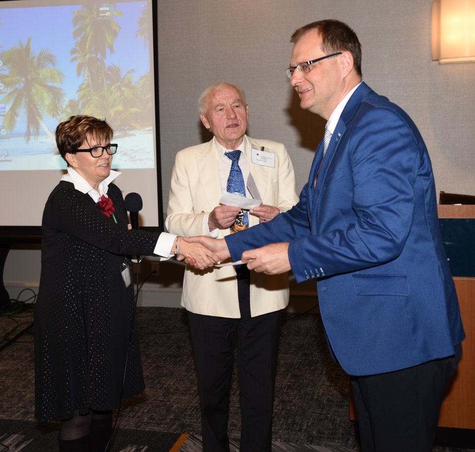 W trakcie konferencji miała miejsce również bardzo miła uroczystość: prof. Jerzy Sarosiek wraz z żoną Ireną przekazali również czeki na rzecz uczelni.