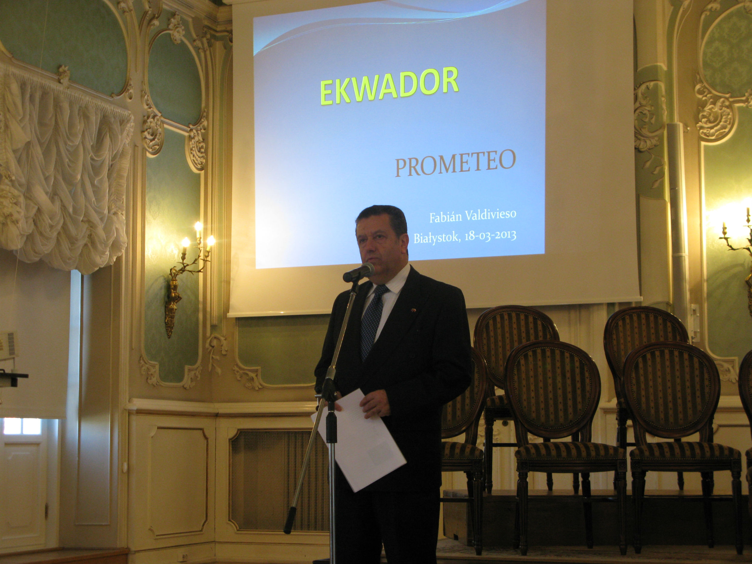 Rząd Ekwadoru poszukuje pięciu tysięcy naukowców z całego świata, którzy zechcą w tym kraju przeprowadzić swoje badania naukowe – to najważniejsze założenie programu „Prometeo”, o którym opowiedział w Białymstoku Jego Ekscelencja Fabián Valdivieso, Ambasador Ekwadoru w Polsce.