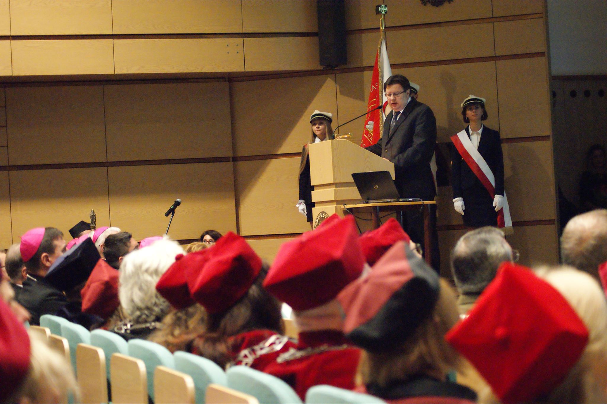 - Każda inauguracja nowego roku akademickiego zachęca przede wszystkim do spojrzenia w przyszłość, której nie sposób dobrze zaplanować, jeśli nie uwzględni się obecnego stanu rzeczy, tworzonego także w przeszłości - powiedział do zebranych ks. prof. dr hab. Stanisław Dziekoński, rektor UKSW