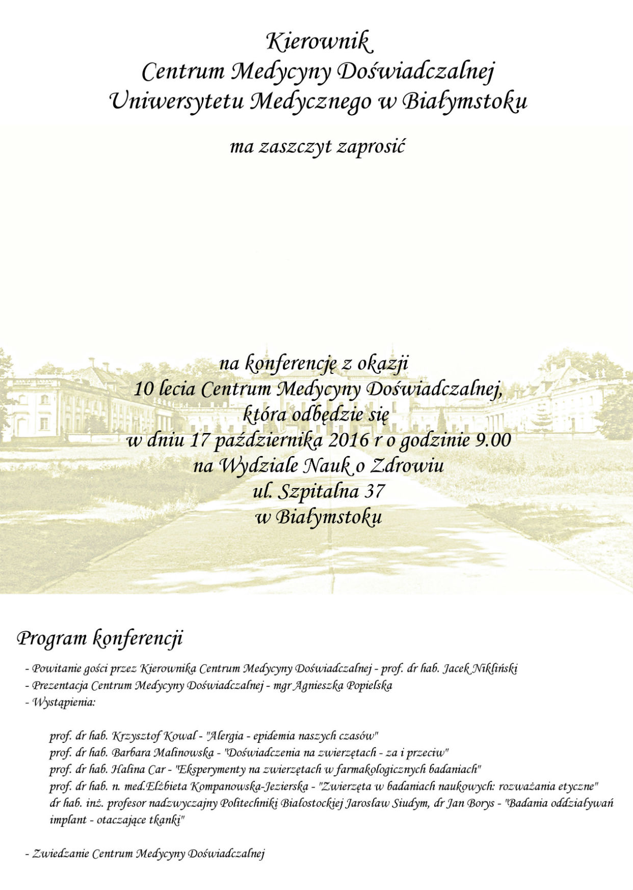 10-lecie Centrum Medycyny Doświadczalnej UMB - 17.10.2016