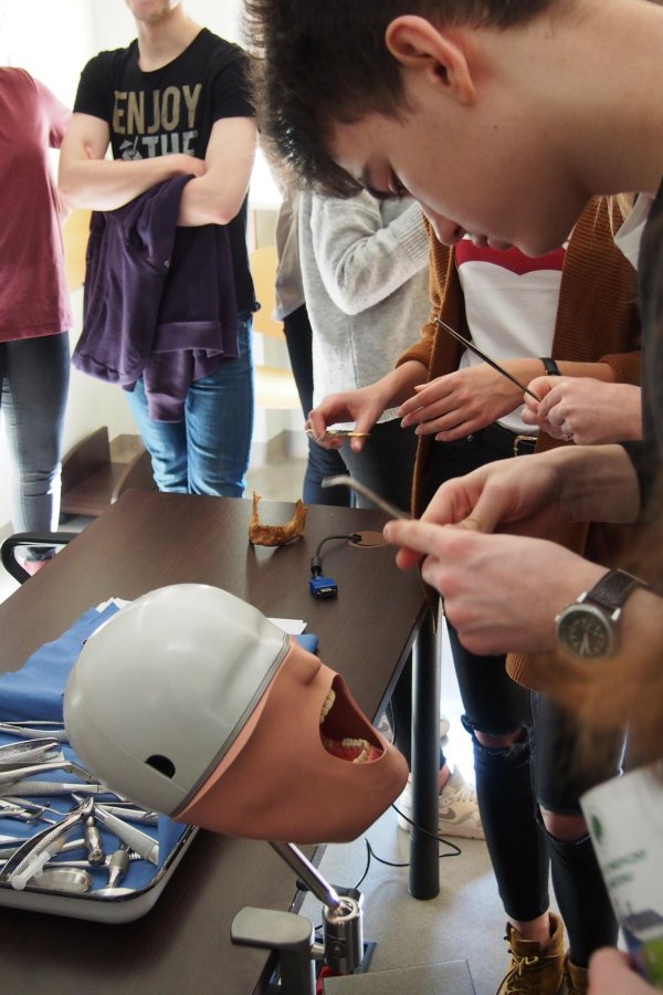 Dalsza część wizyty miała charakter interaktywny – licealiści brali udział w spotkaniach i warsztatach w Centrum Dydaktyki Stomatologicznej, Zakładzie Stomatologii Zintegrowanej oraz w Zakładzie Technik Dentystycznych. Zajęcia praktyczne poprowadzili studenci UMB - kierunku Techniki Dentystyczne oraz zrzeszeni w Polskim Towarzystwie Studentów Stomatologii.