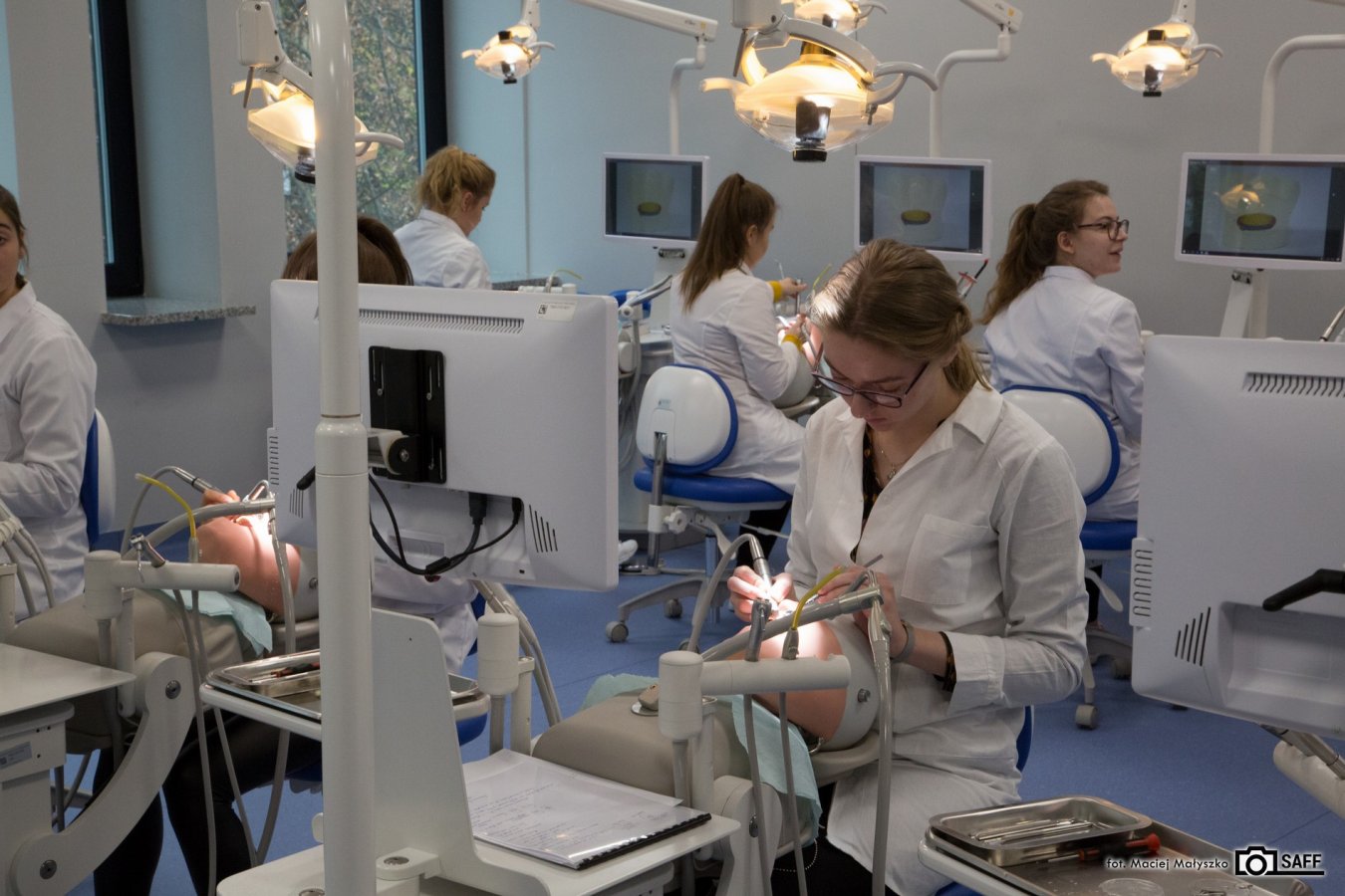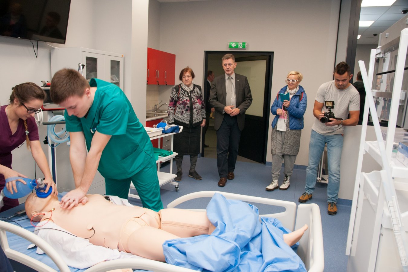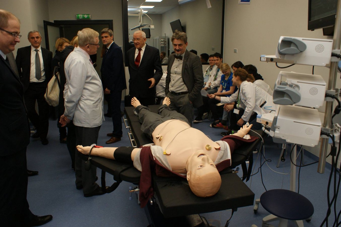 i wysokiej wierności, czyli prostsze i bardziej skomplikowane” - Na tych prostszych można się np. nauczyć takich umiejętności jak np. osłuchiwanie pacjenta, robienie zastrzyków, mierzenie ciśnienia, tętna, nauka wkłuwania. Inne fantomy pomagają natomiast w nauce np. czynności ratujących życie, wymagających "błyskawicznej reakcji" np. intubacji, defibrylacji, masażu serca. "Łącznie z tym, że nasz „pacjent" będzie się krztusił, kaszlał, siniał, wystąpi mu pot na czole, więc to są sytuacje jak najbardziej rzeczywiste" - opowiada Prorektor, prof. A. Chabowski. Podkreśla, że jednocześnie są podpięte monitory EKG i można sprawdzić czy student prawidłowo zadziałał i czy pacjent poczuł się lepiej. Zaawansowane symulatory służą też diagnozowaniu chorób. W przypadku stomatologii studenci pracują na prawdziwych ubytkach, a wykładowca może na bieżąco obserwować ich pracę, pokazać jak powinna wyglądać prawidłowa obróbka zęba.