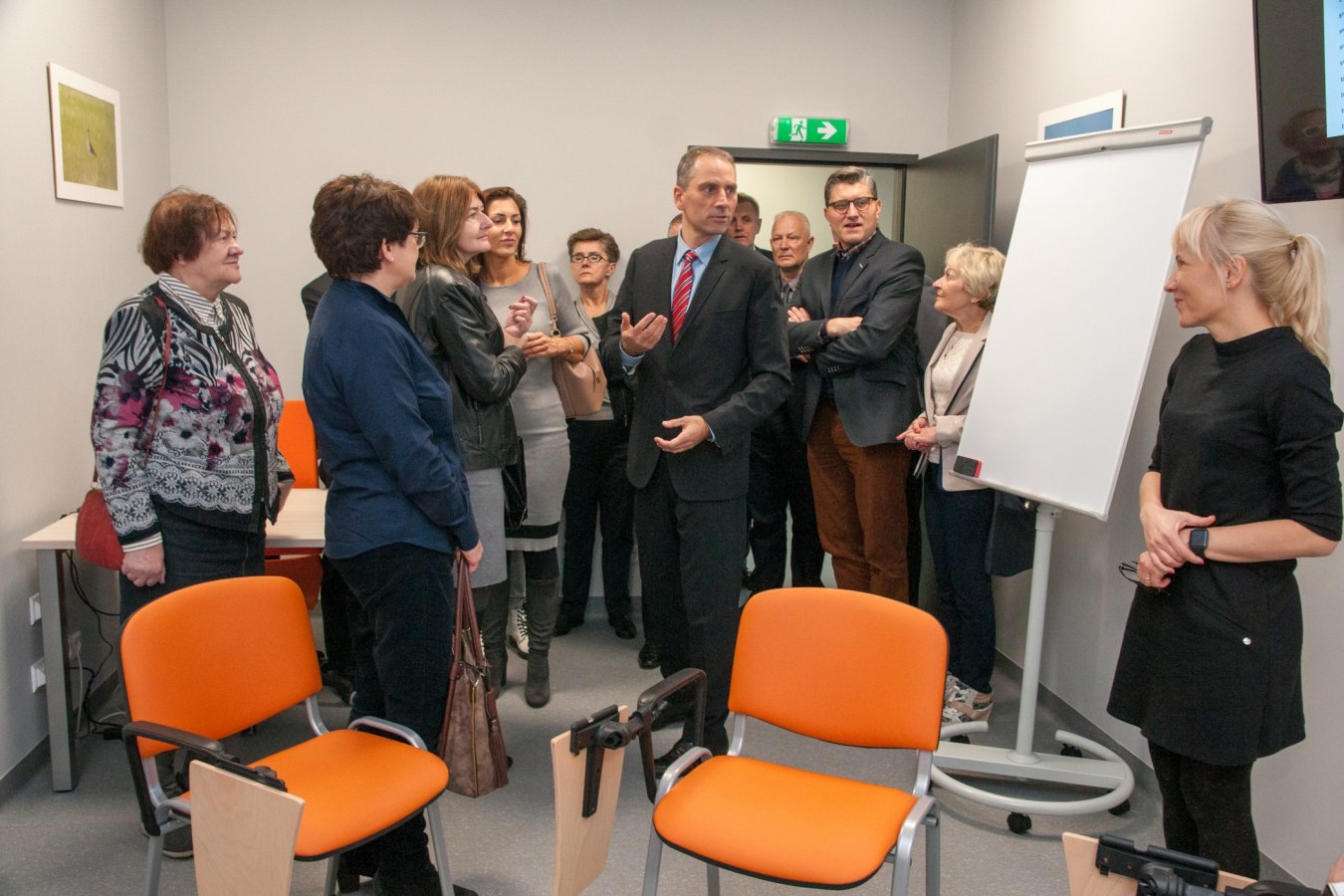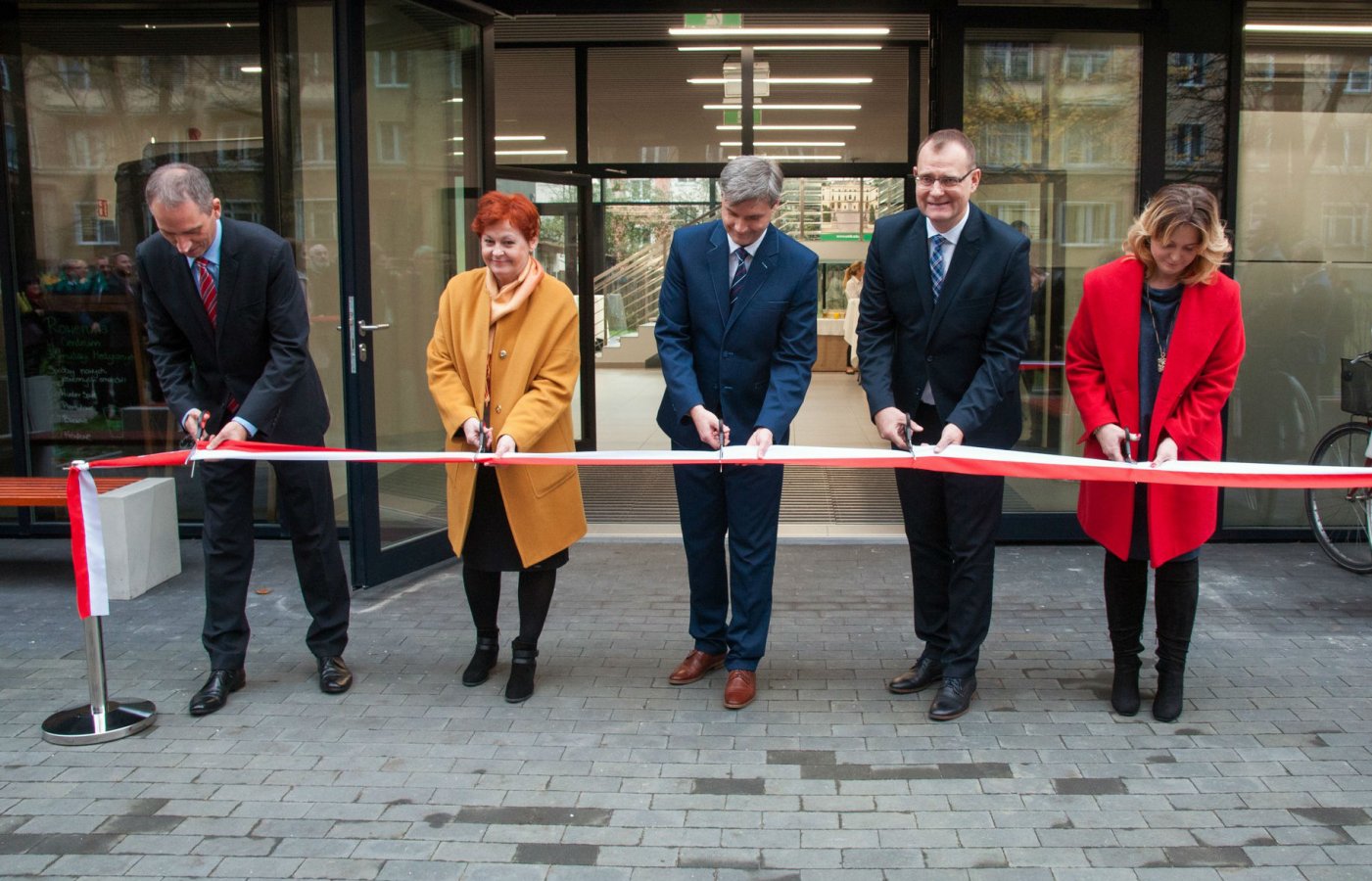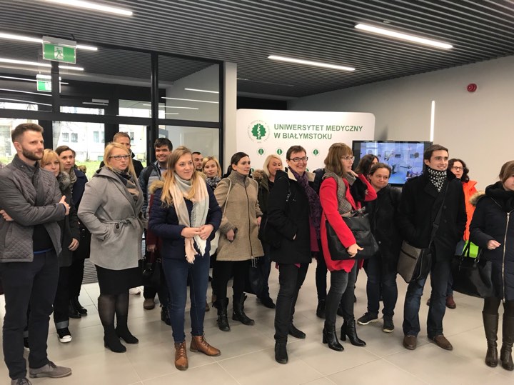 Symbolicznego przecięcia wstęgi dokonali: JM Rektor UMB - prof. Adam Krętowski, kierownik projektu - Prorektor ds. Studenckich, prof. Adrian Chabowski, prof. Włodzimierz Łuczyński, dr hab. Anna Kierklo, oraz dr hab. Marzena Wojewódzka-Żelezniakowicz.