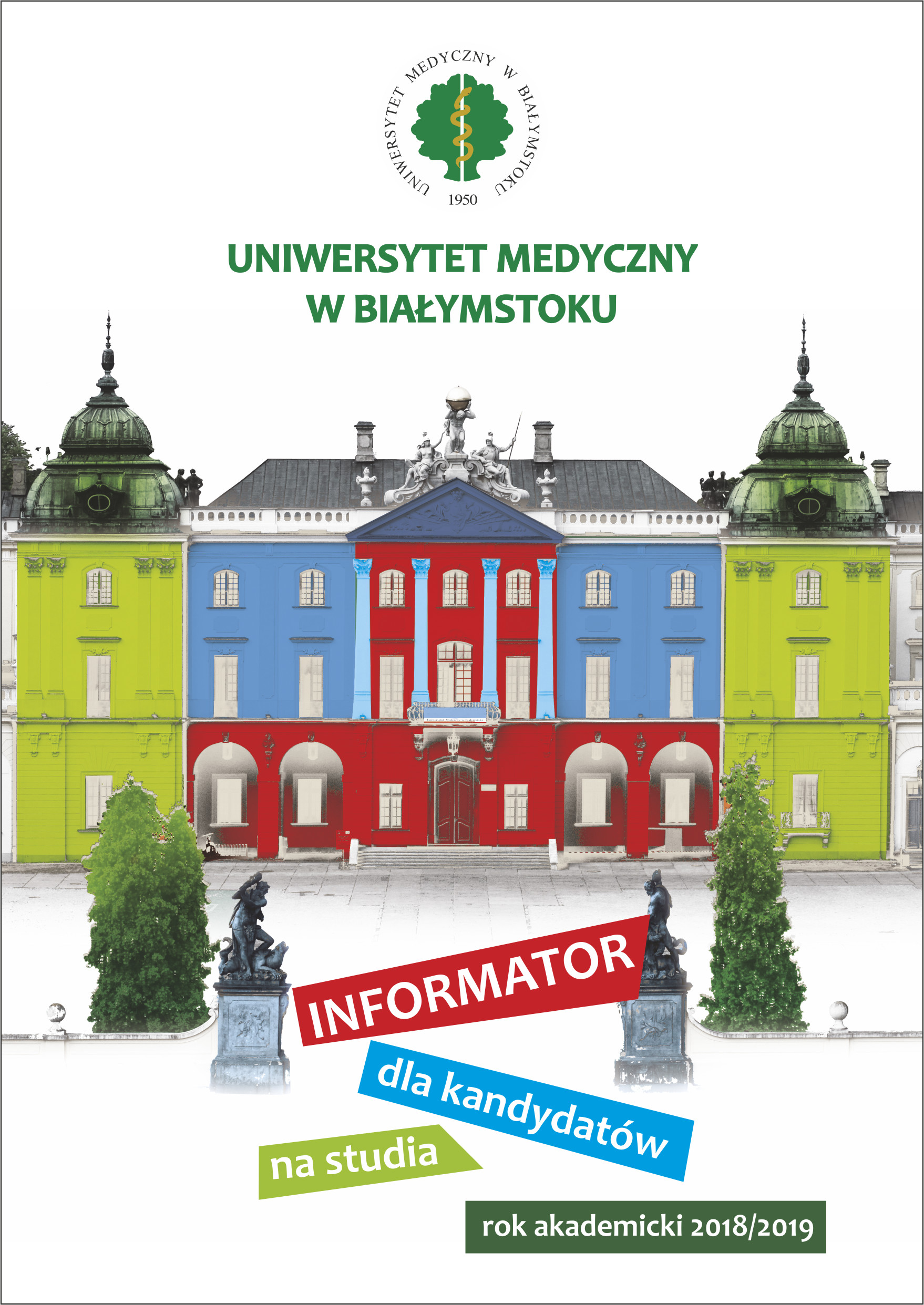 Informujemy, że dostępny jest już folder rekrutacyjny na rok akademicki 2018/2019. Po wersję papierową zapraszamy do Biura Promocji i Rekrutacji Uniwerystetu Medycznego w Białymstoku (ul. Jana Kilińskiego 1, lewe skrzydło Pałacu Branickich), natomiast wersja elektroniczna dostępna jest tu.