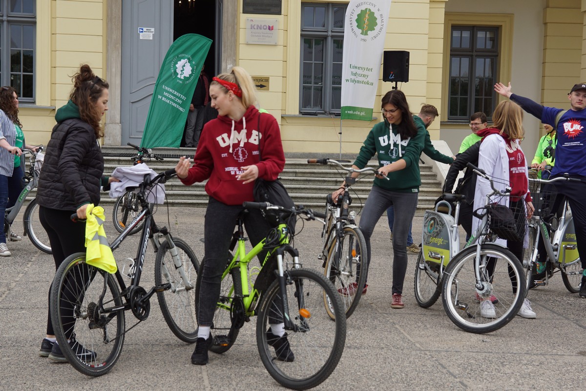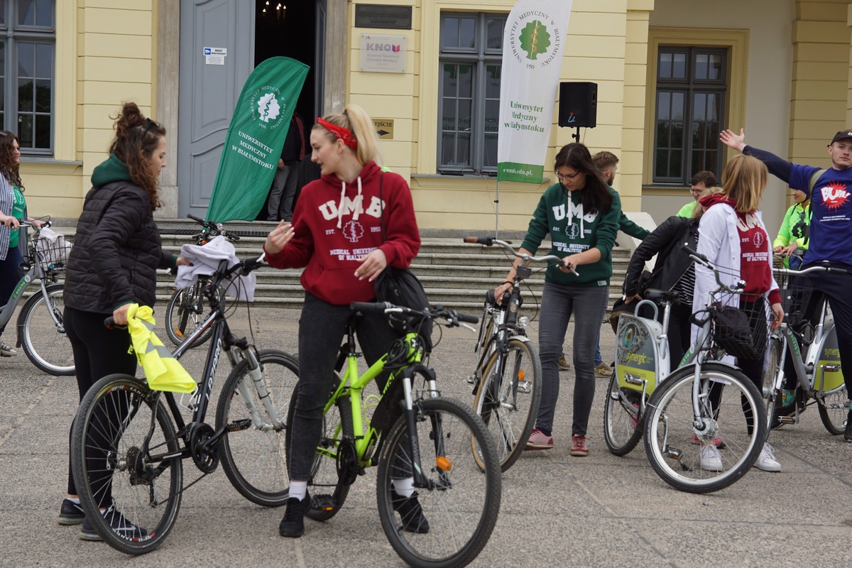 Studenci, władze rektorskie, nauczyciele akademiccy, lekarze i przedstawiciele administracji Uniwersytetu Medycznego w Białymstoku promowali zdrowy styl życia oraz Uczelnię. Sprzed Pałacu Branickich o 11.00 wyruszył III Medykaliowy Przejazd Rowerowy. Mimo pochmurnego nieba na dziedzińcu nie zabrakło chętnych do wspólnego przejazdu przez centrum Białegostoku. Uczestnicy peletonu ubrani w sportowe koszulki z logo UMBoraz lekarskie fartuchy wysłuchali ciekawostek na temat zalet jazdy rowerem, ale także zagrożeń związanych z upadkami. Ekspercką wiedzą podzielił się dr Tomasz Guszczyn Kierownik Kliniki Ortopedii i Traumatologii Dziecięcej w UDSK (prywatnie zapalony rowerzysta). Dr Guszczyn polecił trasę z Białegostoku do Królowego Mostu.