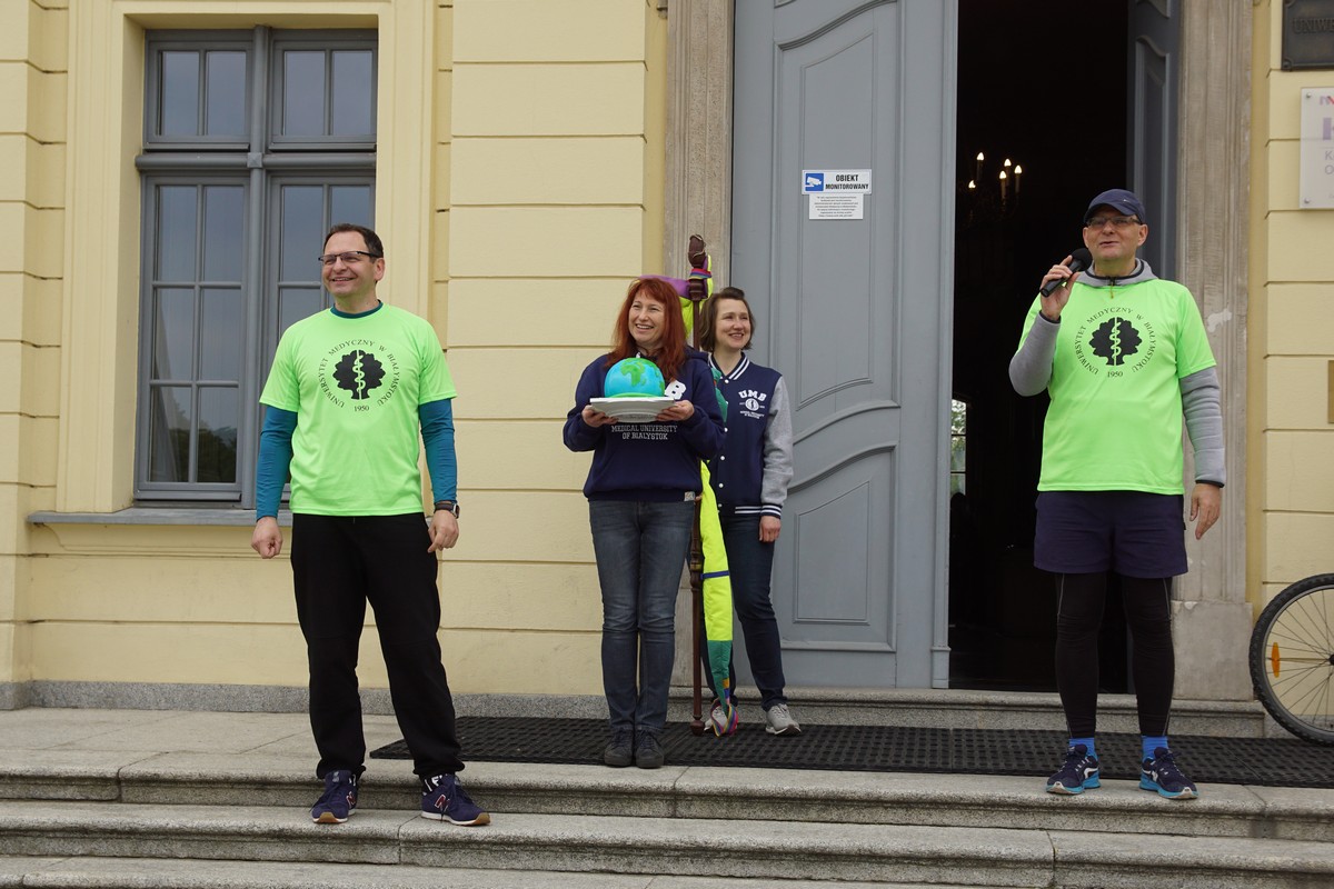 Po przywitaniu społeczności akademickiej przez JM Rektora UMB, prof. dr hab. Adama Krętowskiego, sygnałem do startu był wystrzał confetti. Następnie w asyście policji peleton przejechał około 10 kilometrów głównymi ulicami Białegostoku. Studenci zorganizowali muzykę na kołach, która dodawała wszystkim sił. Mimo niewielkich utrudnień w ruchu, mieszkańcy miasta entuzjastycznie reagowali na uczestników przejazdu. Były pozdrowienia i mnóstwo zdjęć, które uwieczniły nasz godzinny rowerowy rajd po zdrowie. My odwdzięczaliśmy się dzwoniąc rowerowymi dzwonkami. Po powrocie na dziedziniec paradny, JM Rektor podziękował wszystkim za wspólny przejazd a policji za sprawną pomoc w organizacji przejazdu. Magnificencja wręczył także reprezentantom English Division tort z okazji jubileuszu 15-lecia nauczania na UMB medycyny w języku angielskim. Na koniec studenci otrzymali od Rektora życzenia dobrej zabawy i symbol władzy – węża eskulapa. Oficjalnie rozpoczęło się świętowanie Medykaliów. Przewodniczący Samorządu studenckiego, Mateusz Grochowski zaprosił wszystkich na piknik medykaliowy, który rozpocznie się dzisiaj (piątek 10.05.2019) o 18.00 na parkingu przy budynku ECF.