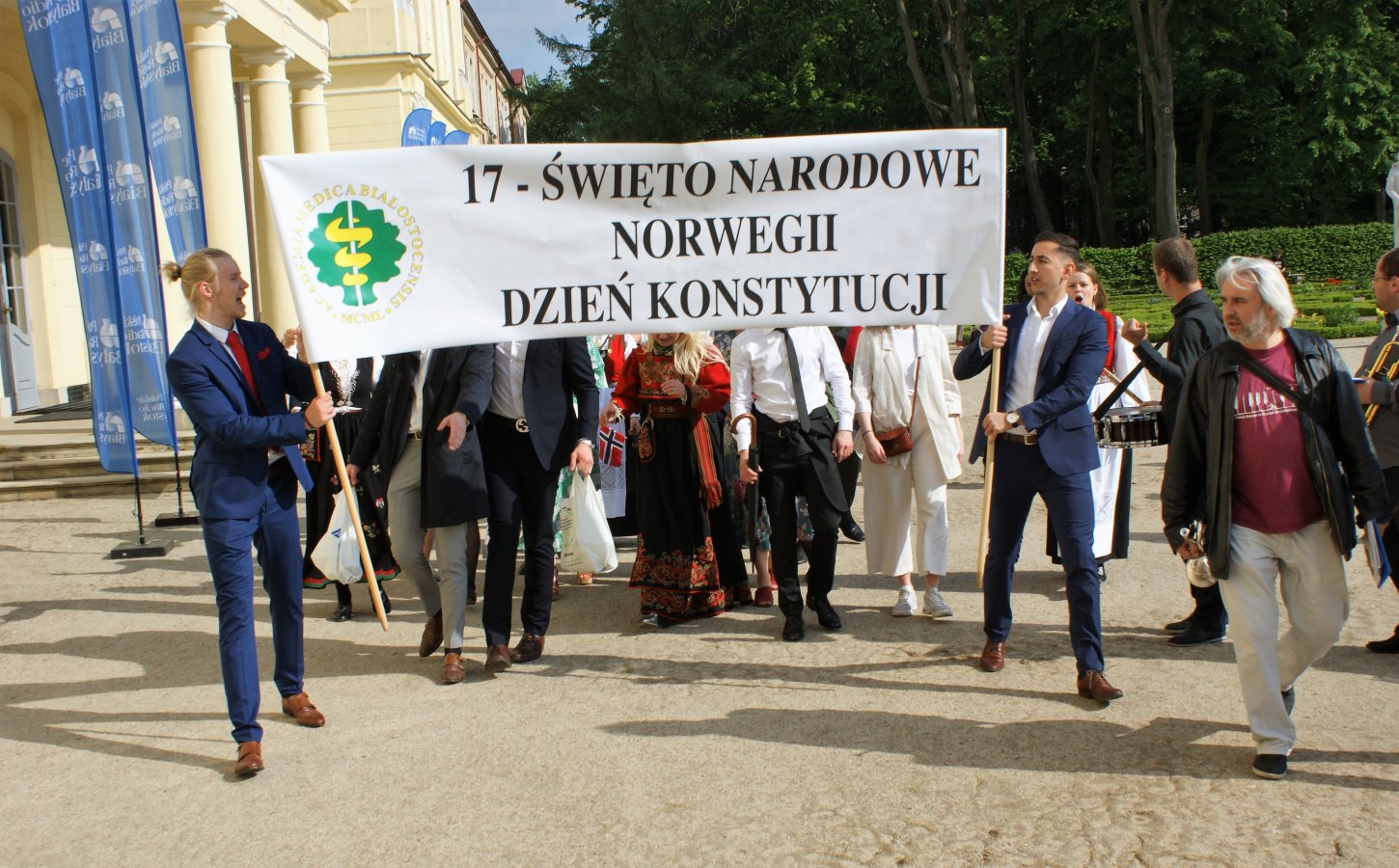 Norwescy studenci Uniwersytetu Medycznego w Białymstoku 17 maja hucznie obchodzą norweskie święto Konstytucji. W Norwegii dzień ten jest spędzany na piknikach, przemarszach i wspólnych imprezach. Dlatego też studenci UMB ubrani w stroje narodowe wyruszyli o 16:00 spod Pałacu Branickich, siedziby Uczelni i przy dźwiękach trąbek oraz pieśni patriotycznych przeszli przez centrum Białegostoku.